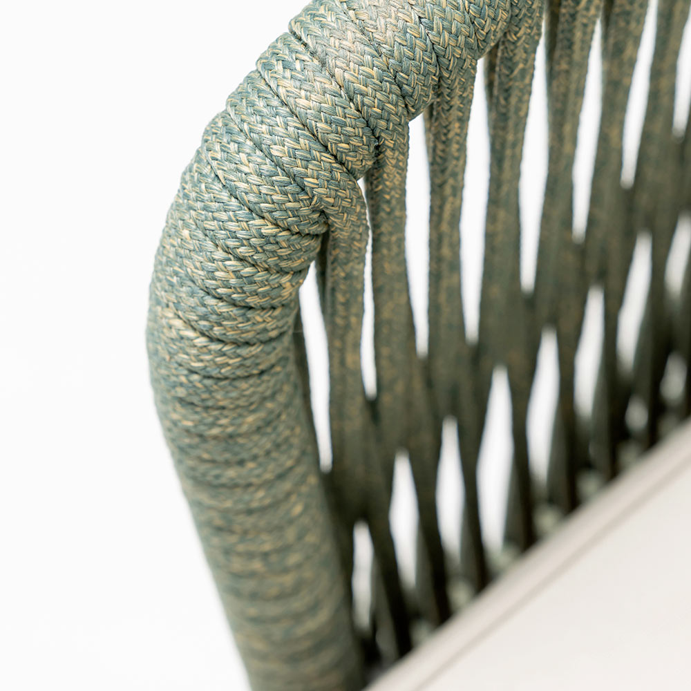 seat and backrest cushions are included. The products of this collection represent the perfect fusion between the naturalness of the wood and the innovation of the woven materials and the