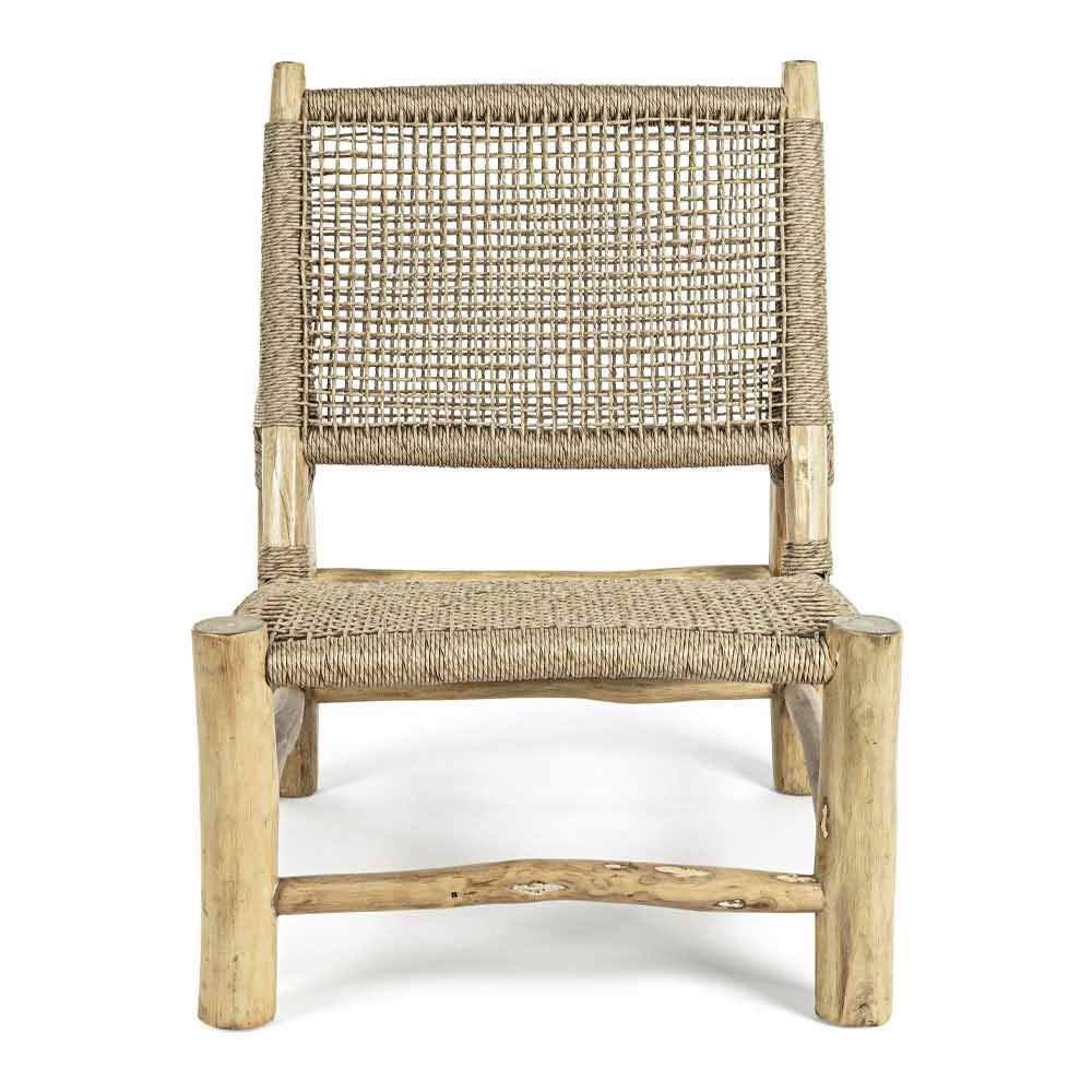 Outdoor armchair in teak branches with seat and back in fibre, 2 pieces.