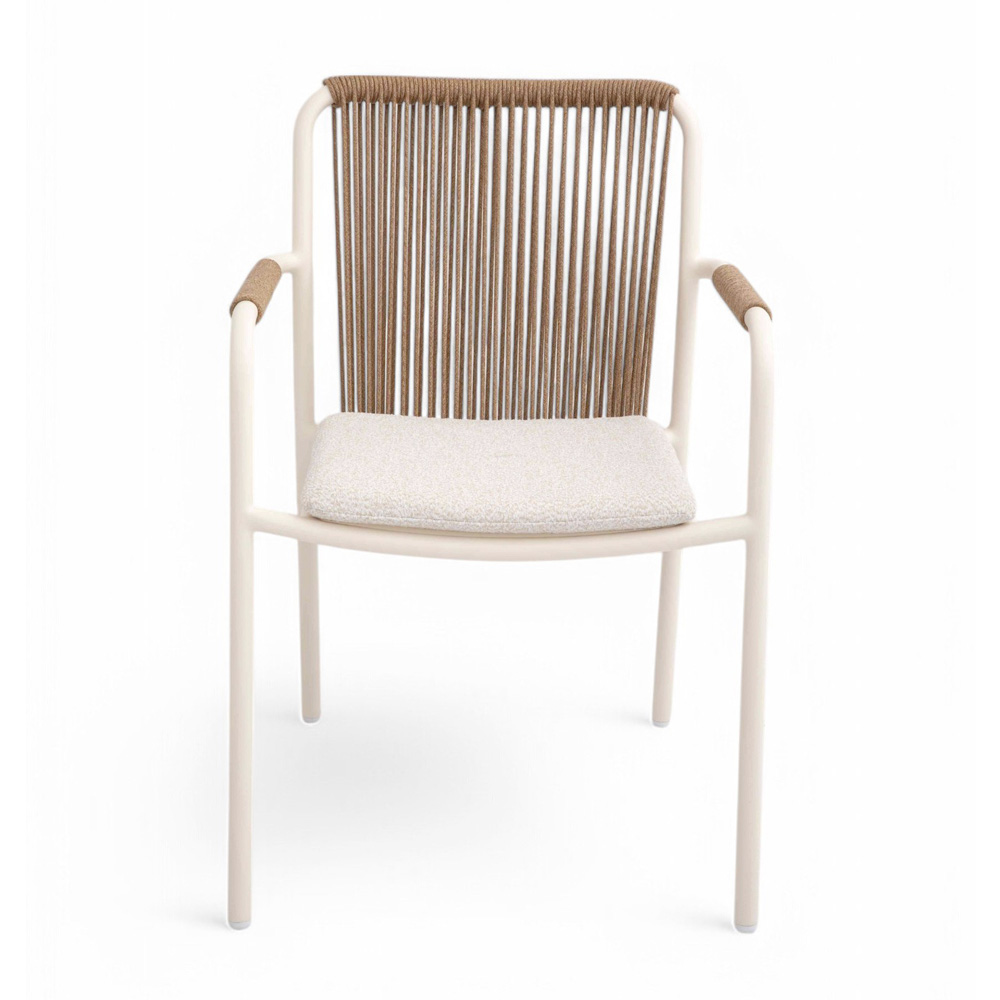 This outdoor chair combines modern design and exceptional comfort , making it perfect for your outdoor space. The painted metal frame guarantees weather resistance and durability over time, while the rope weave adds a touch of natural elegance .