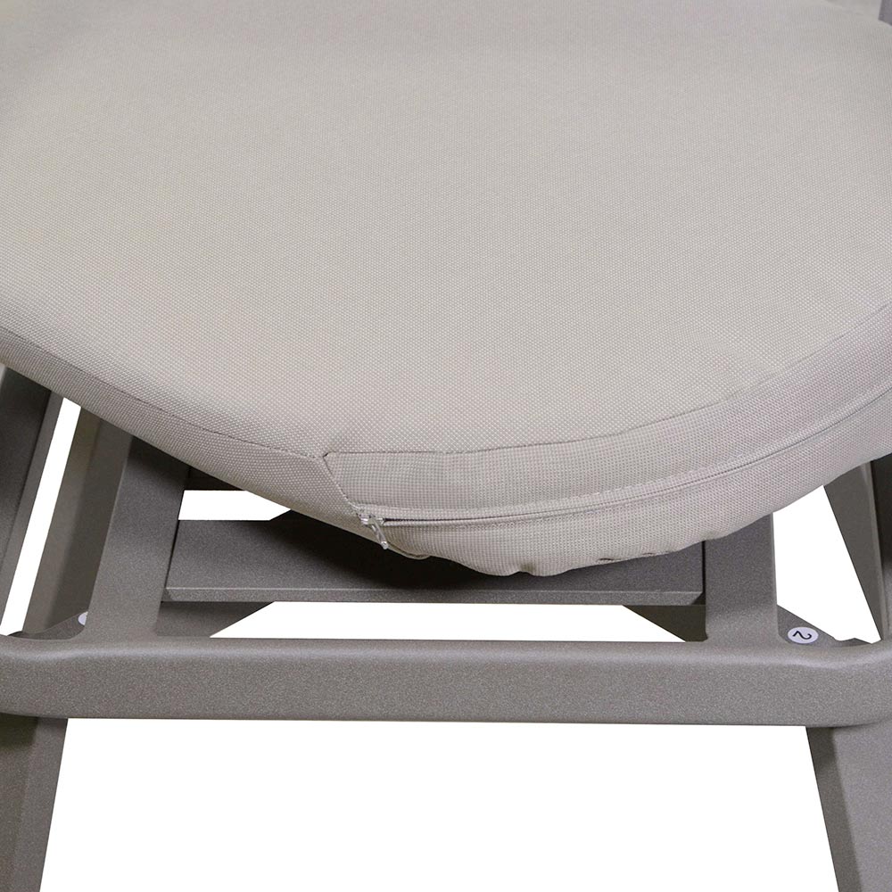 The sturdy aluminium frame ensures durability and weather resistance, while its neutral colour and elegant shape integrate perfectly with any outdoor decor. Ideal for those seeking uncompromising style and lasting comfort.