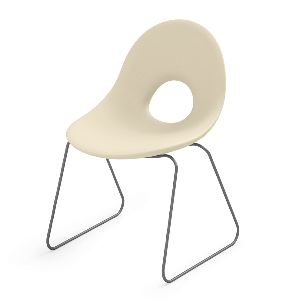 Its peculiarity also lies in the special shape of the legs which give life to a strong ergonomic experience and make this chair very stable, ideal for optimizing spaces thanks to its small size. Available in 7 different colours, this chair is able to enrich any domestic environment and contract spaces, both indoors and outdoors.