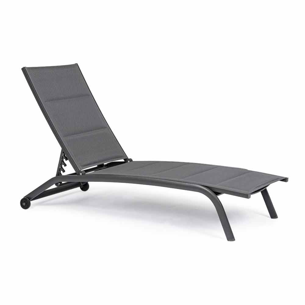 Outdoor Chaise Longue in Textilene and Aluminium with Wheels, 4 Pieces - Babilonia