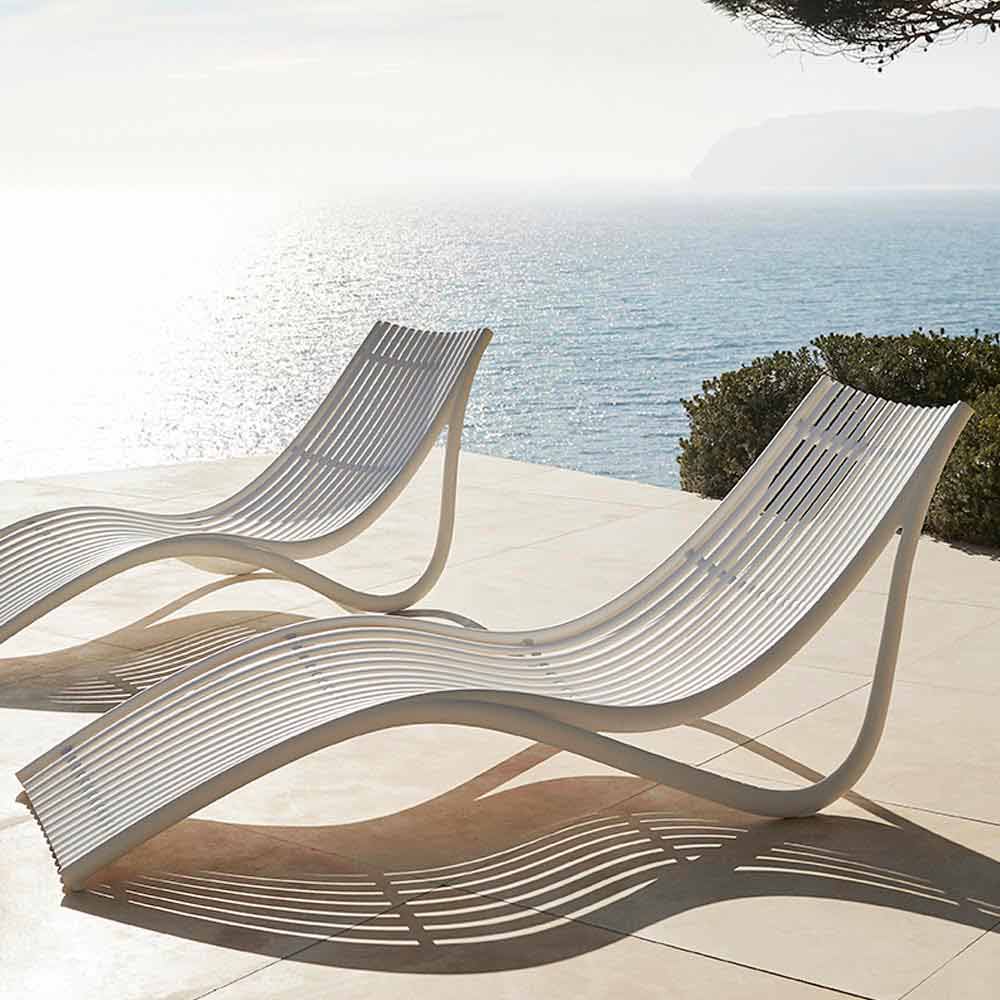 This sun lounger for the garden is characterized by its monobloc wavy shapes that recall the sea and offer ergonomic comfort for an avant-garde and stylish rest.