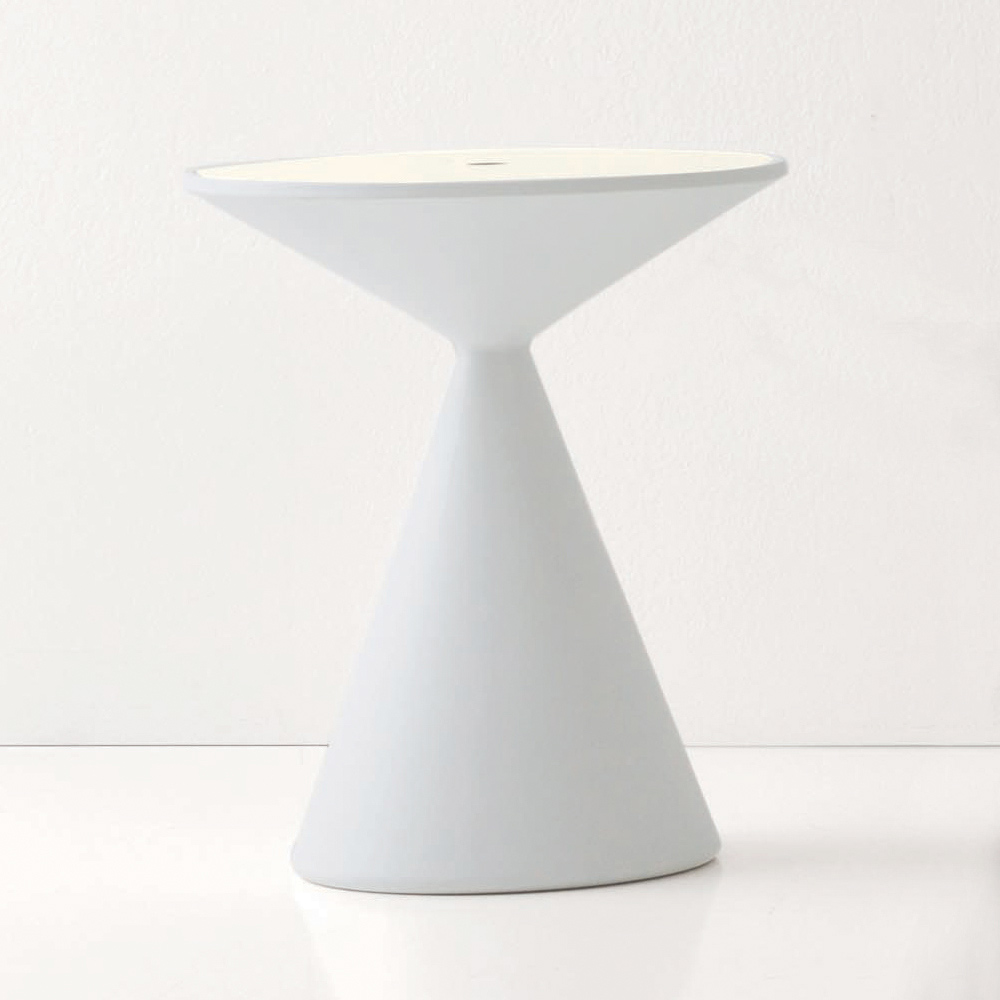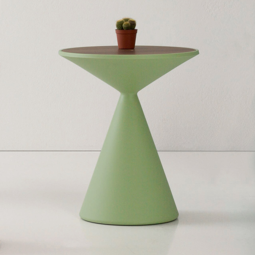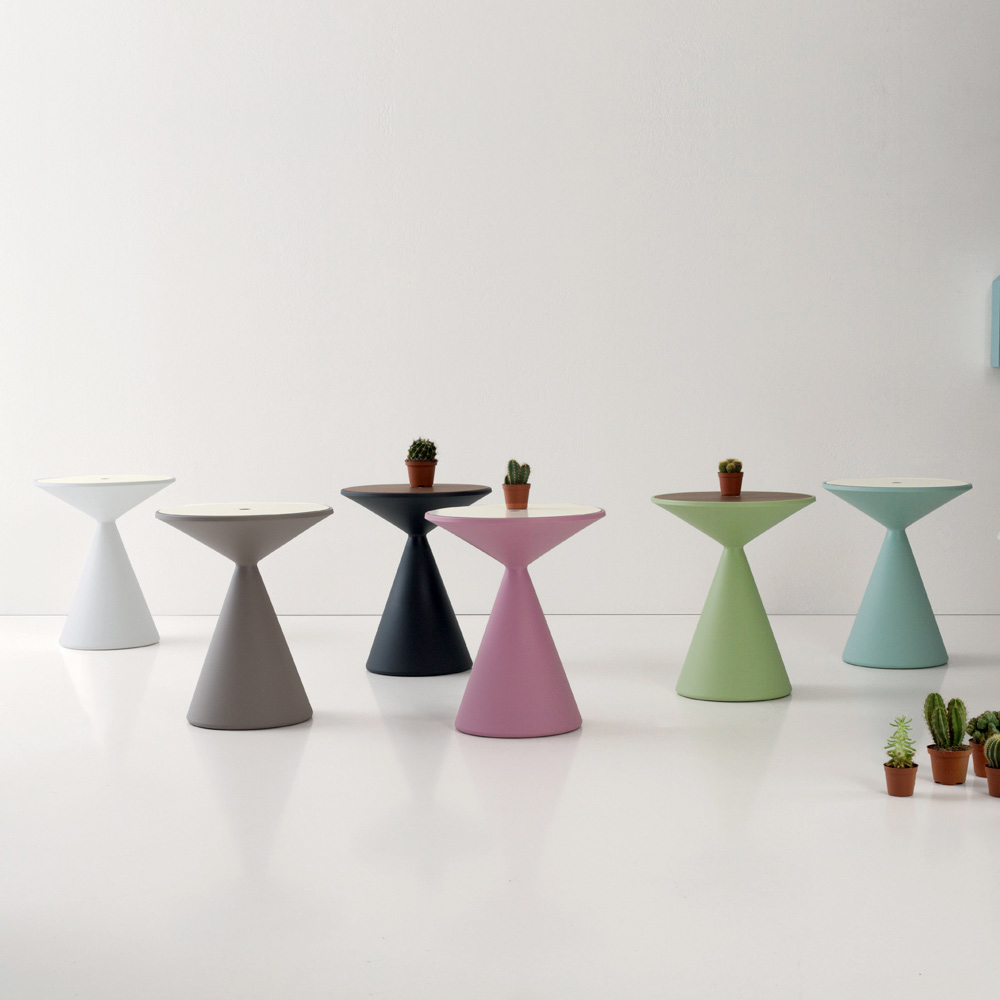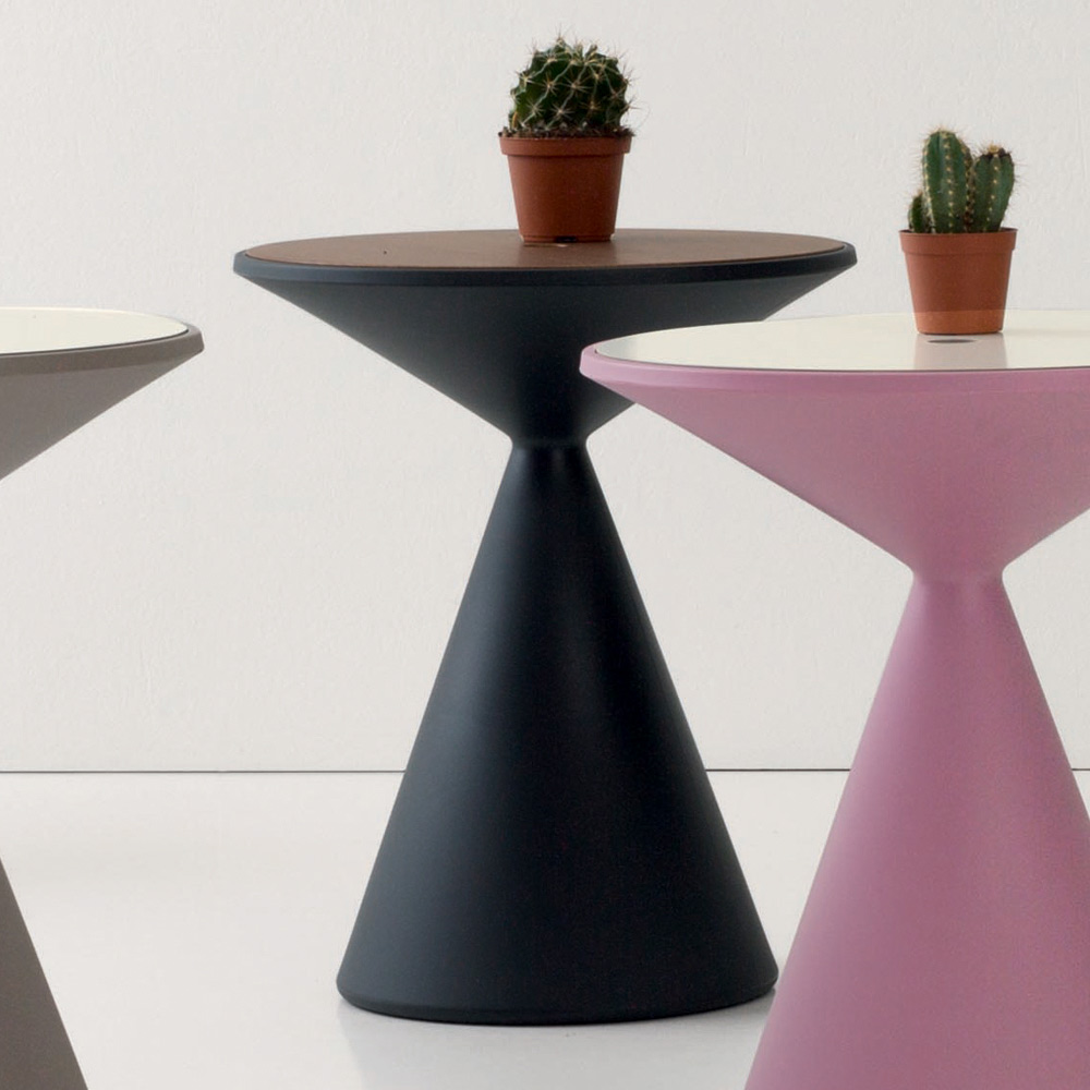 Round outdoor table in colored polyethylene with internal container made in Italy.