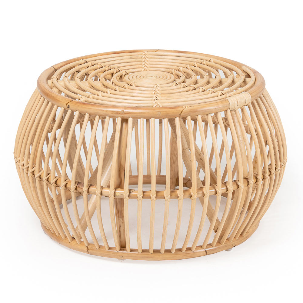 Outdoor coffee table Ā made of natural rattan woven strictly by hand .