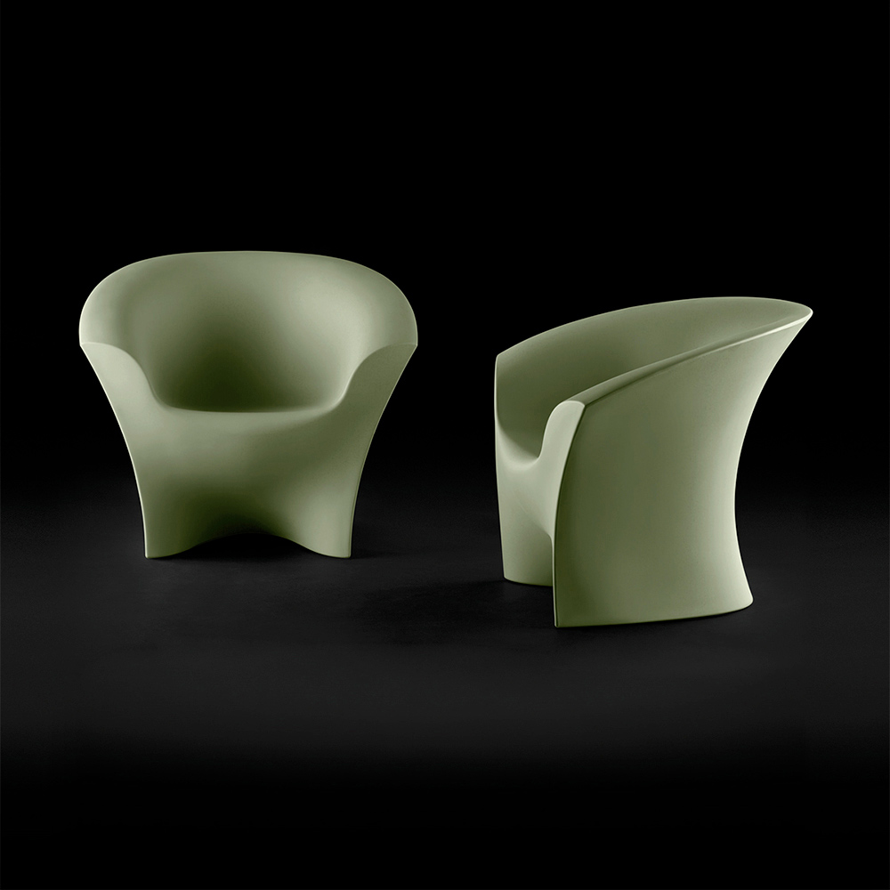 polyethylene available in the opaque version characterized by excellent resistance to the sun, shocks and heat, in the resistant and bright lacquered version that allows you to create plays of light and reflections that become protagonists within the environment or finally, in the metallic version.