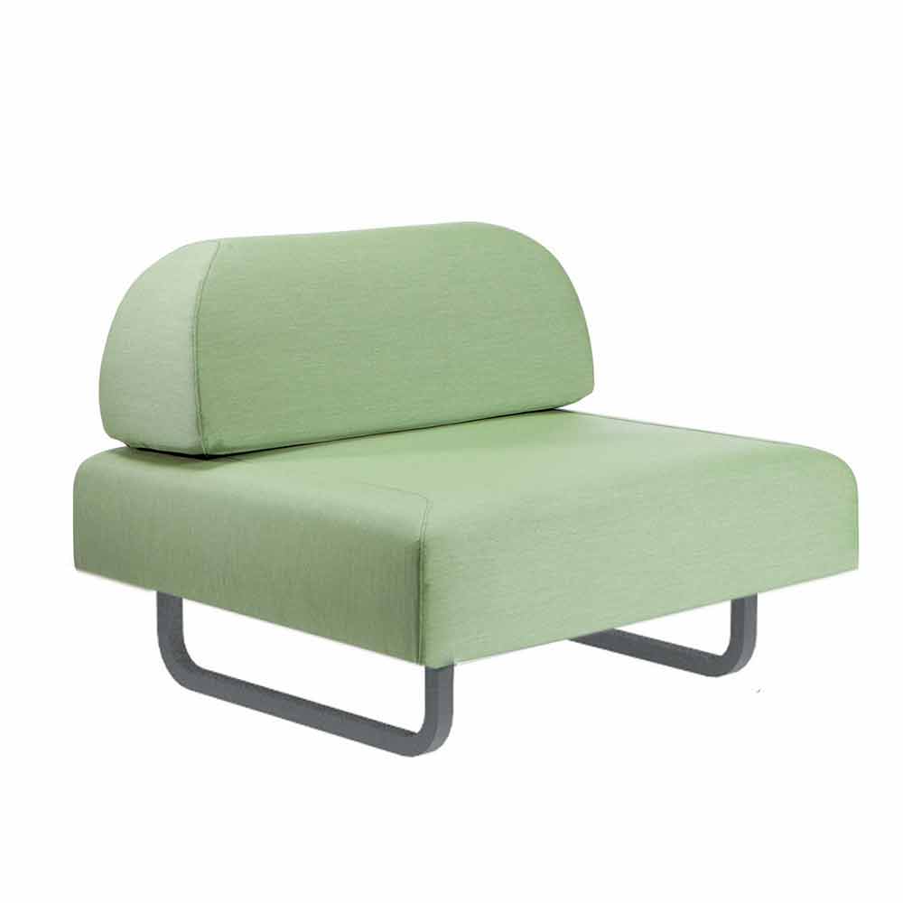 resistance to atmospheric agents , stains, mould and UV rays. The feet of the armchair are instead made of powder-coated galvanized iron painted with thermosetting powder in a matt finish. Ideal for outdoor but also indoor environments, the armchair includes a cushion that can be positioned as desired, making the product versatile and modular.