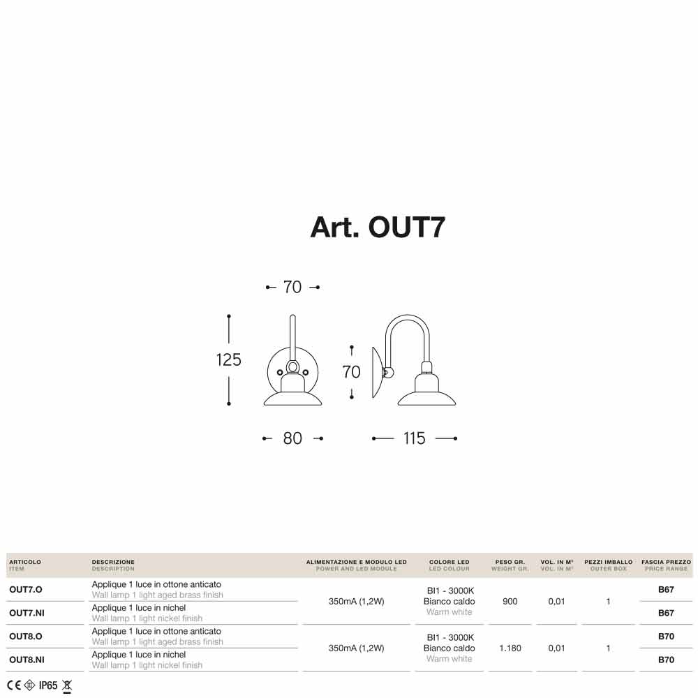Outdoor designer wall lamp Giulietta Sprint – Small by Aldo Bernardi, made of copper and brass.