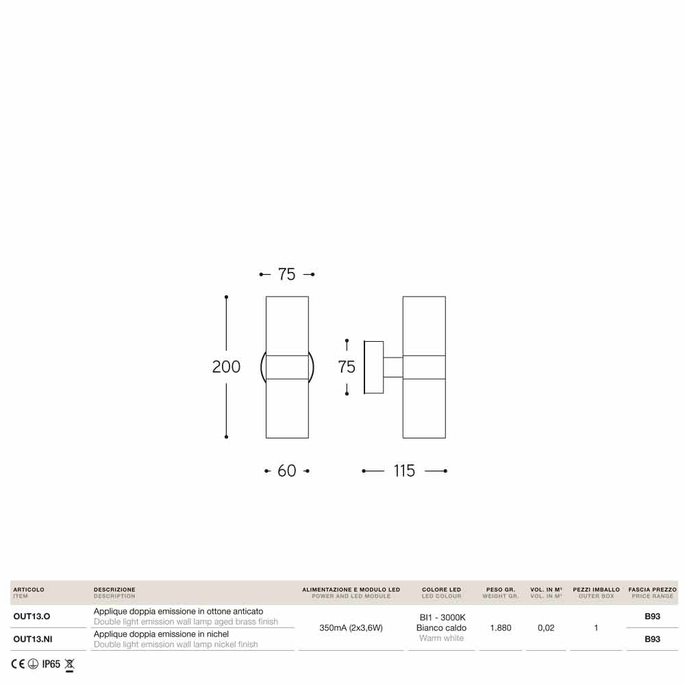 Outdoor designer wall sconce Abarth by Aldo Bernardi, made of brass.