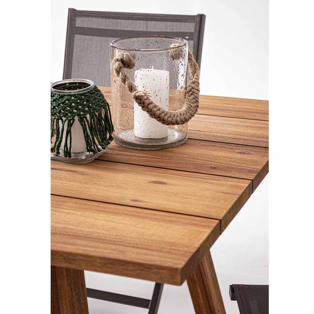 Acacia wood outdoor dining table.