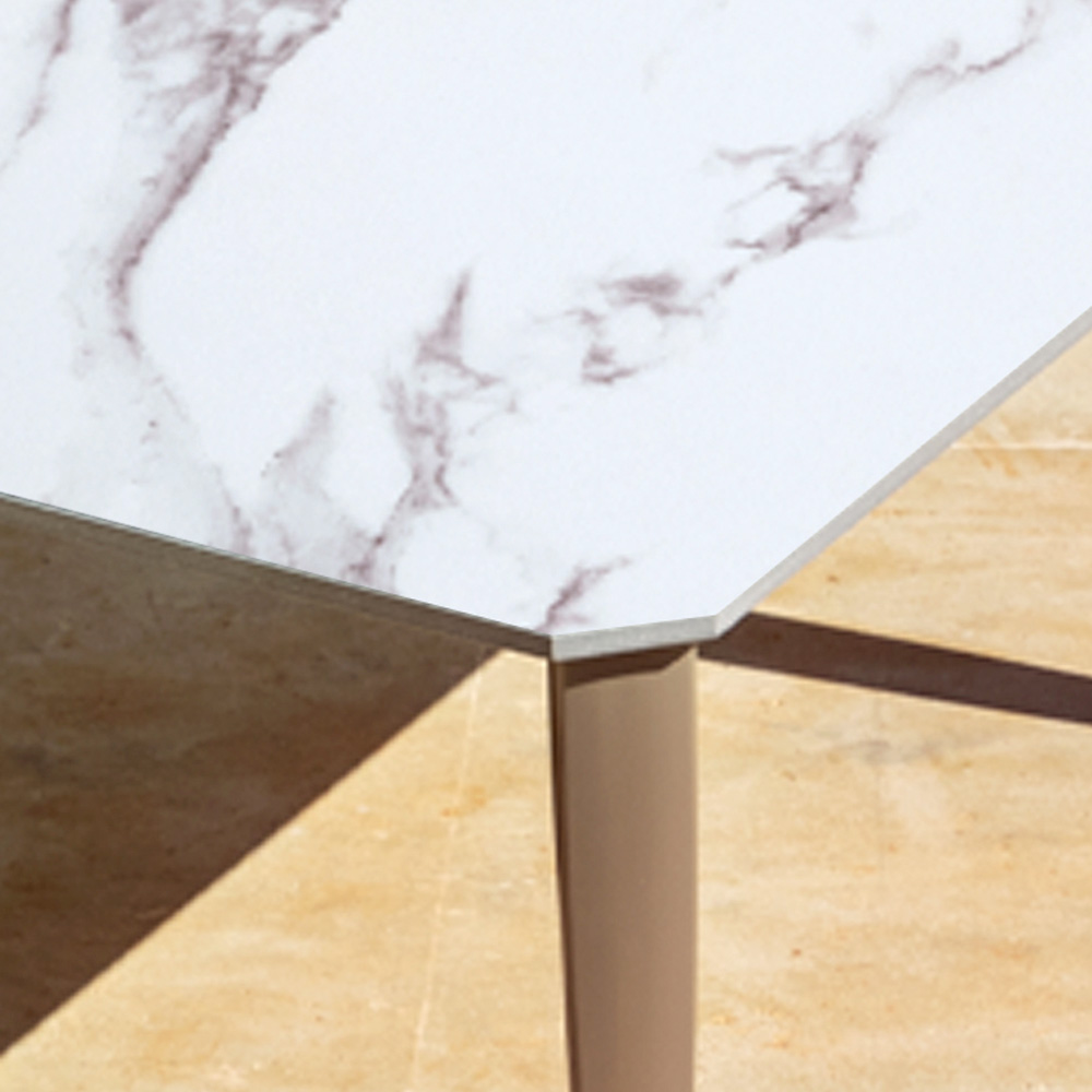 - metallic sand grey aluminium and white marble effect stoneware top