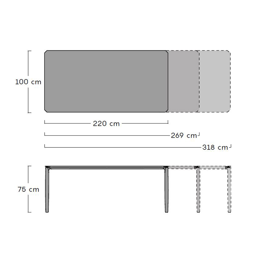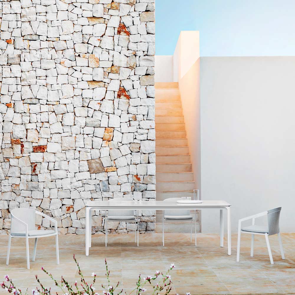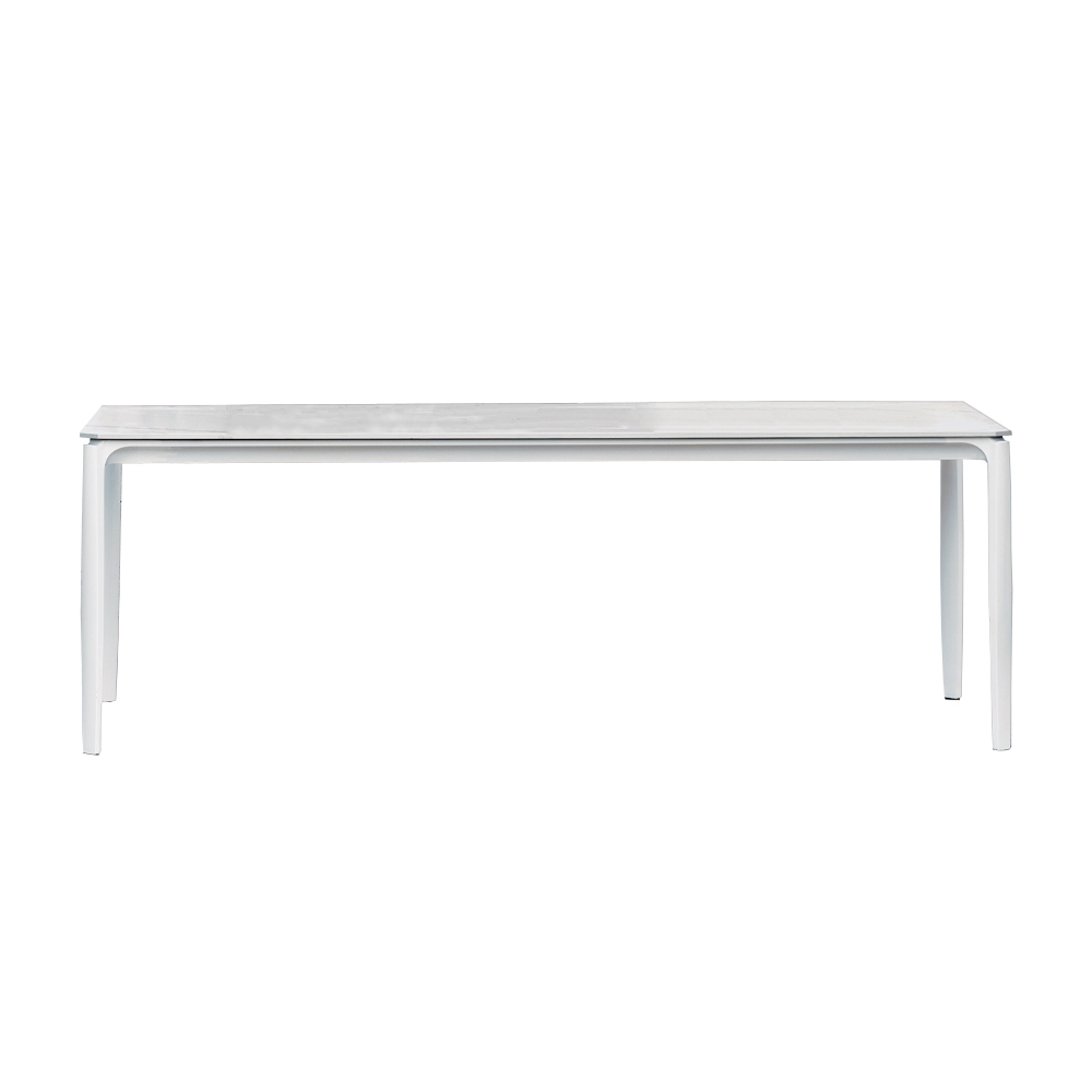 Outdoor design dining table, extendable to 318 cm in aluminium and stoneware top in various finishes, made in Italy.