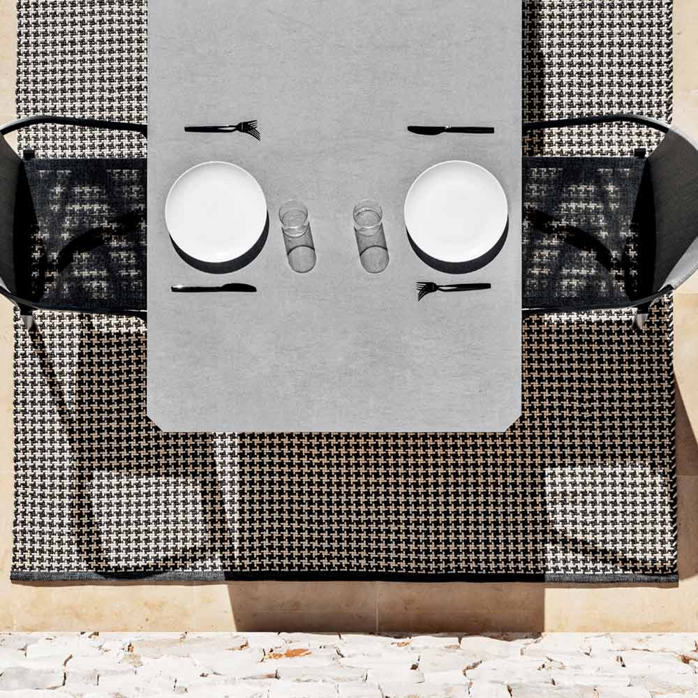 The collection is characterized by the detail of the aluminium leg as a focal point combined with the formal and modular rigor of the padding, to experience the outdoors in terms of maximum relaxation and conviviality, seated on the sofa, around a table or lying on the sunbed. .