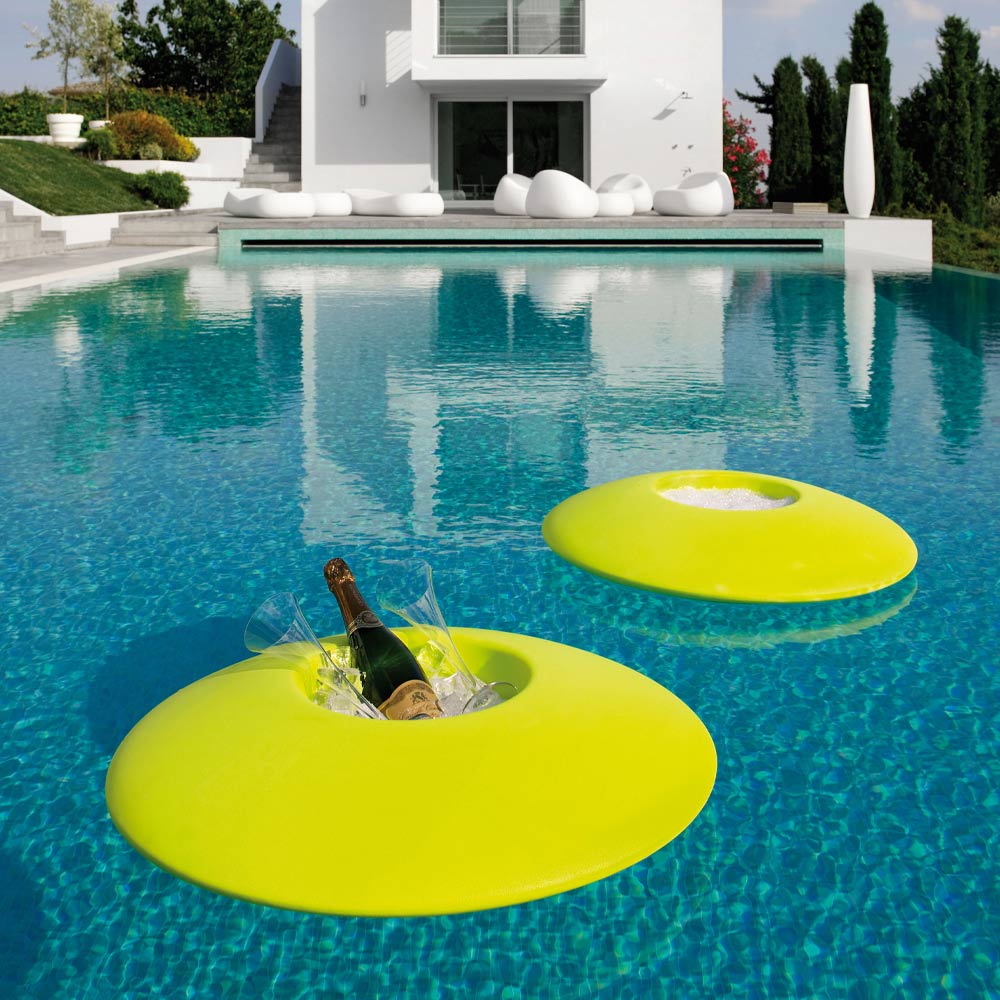 practical floating container in situations such as swimming pools or spas where, in addition to enriching the surrounding furniture with colour, it offers a particularly functional solution.