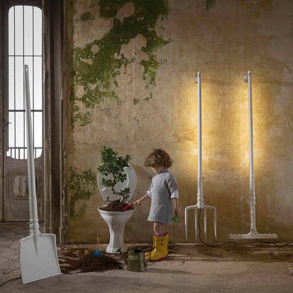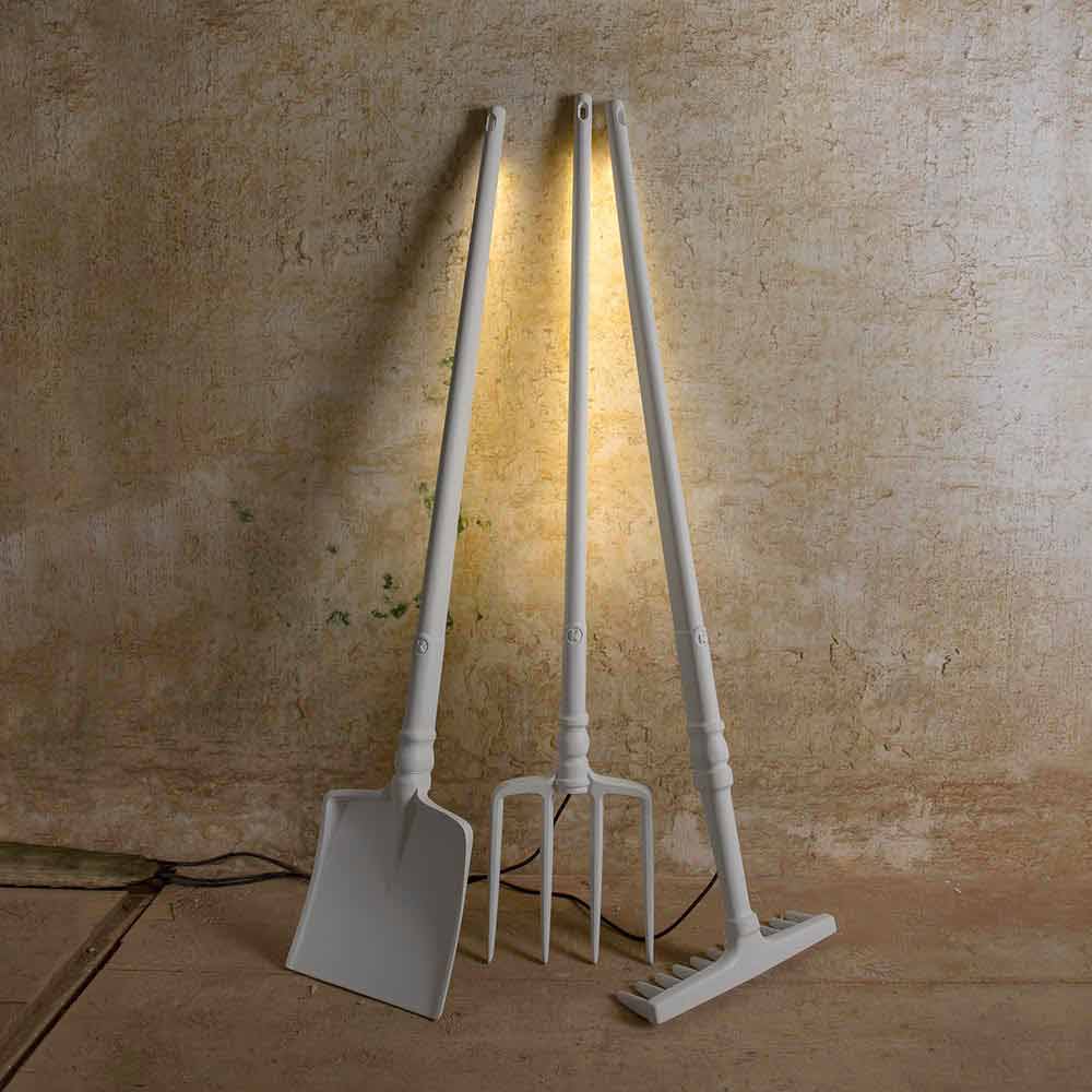 This original and unique outdoor floor lamp is made in 3 different shapes to remind us of the tools that are used less and less nowadays: the pitchfork, the shovel and the rake.