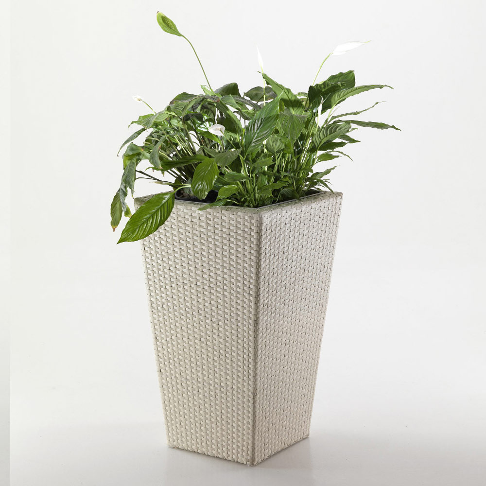 Hand-woven polyrattan garden planter.