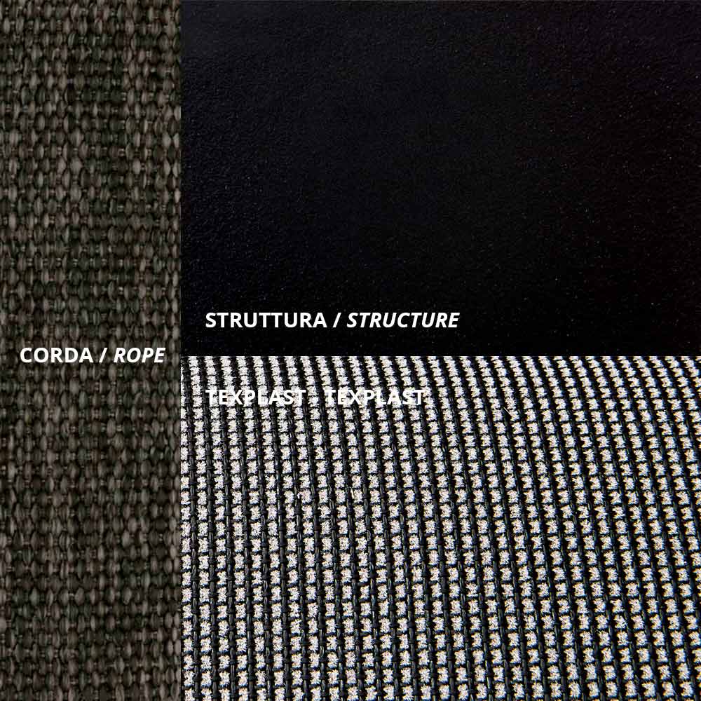 - Frame: black + Rope: black + Cushions: sensitive black