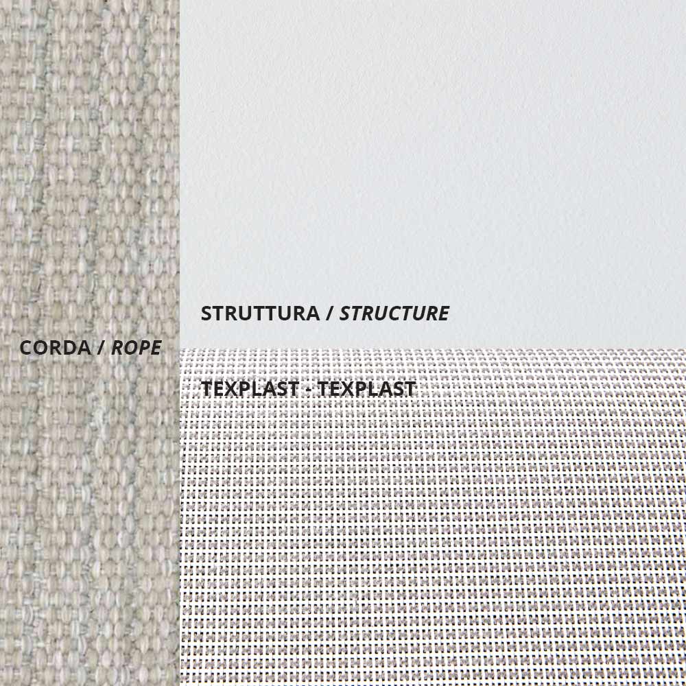 - Structure: embossed white + Rope: mud + Cushions: sensitive white