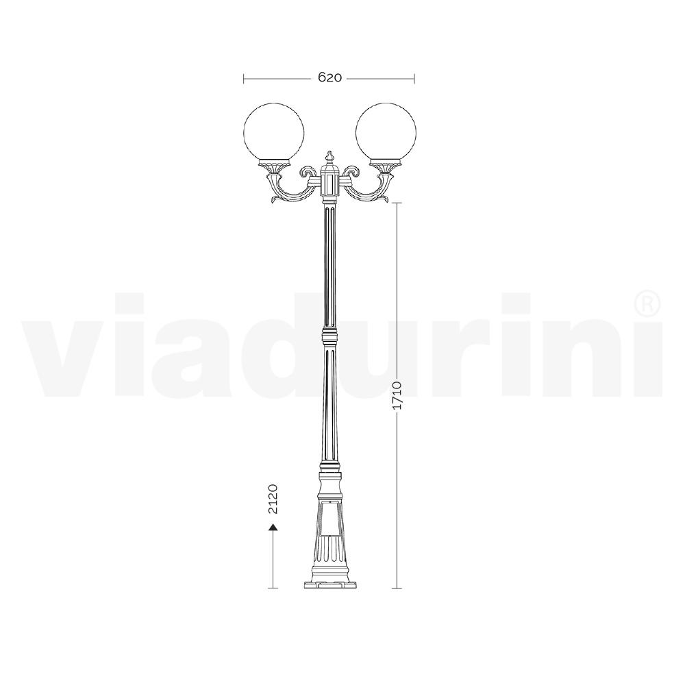 Bring a breath of classic elegance to your outdoor space with this cast aluminum outdoor street lamp. The refined superior quality aluminum construction promises unparalleled resistance to weather conditions, ensuring you have a long-lasting and timeless lighting solution. This street lamp diffuses a balanced and homogeneous light, perfect for driveways, gardens or patios. The finish blends harmoniously with the natural landscape, adding a touch of nobility and tradition to the context in which it is placed. This lamppost is not simply a functional object, but a true symbol of style and refinement , capable of transforming any exterior into an enchanted and welcoming place.