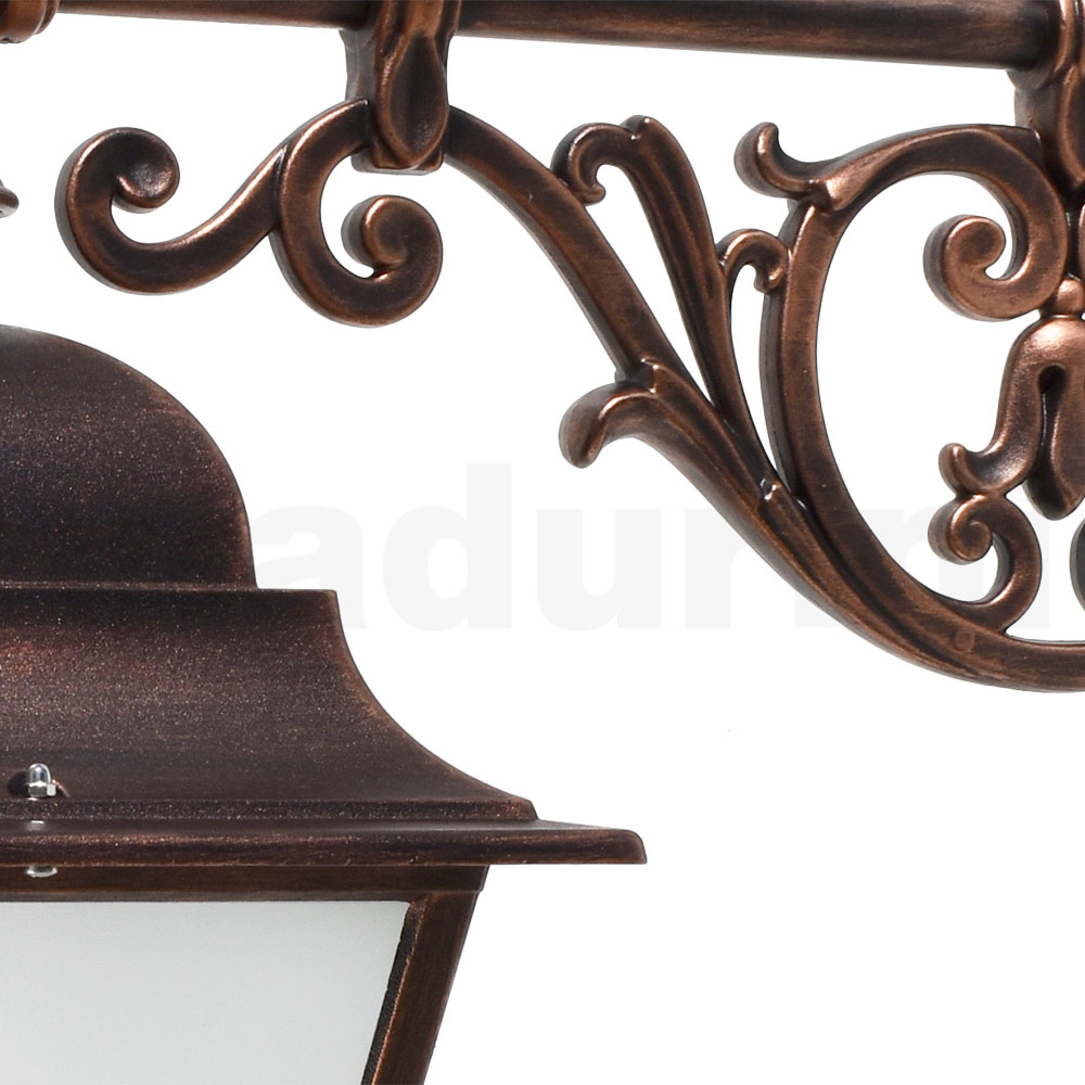 This outdoor lamp represents the pinnacle of elegance and functionality . With a die-cast aluminum structure, it promises not only strength and longevity but also an eye-catching style. Its finish blends beautifully with the surrounding architecture, creating a welcoming and refined atmosphere . The sandblasted glass that surrounds the light source guarantees a clear and bright diffusion of light, perfect for welcoming guests or for gracefully illuminating your outdoor space. The sophisticated design , characterized by curved queues and ornamental details, makes this lamp a point of visual interest as well as a source of light. Ideal for those who appreciate timeless charm and desire an aesthetic that complements the natural beauty of the outdoor environment.