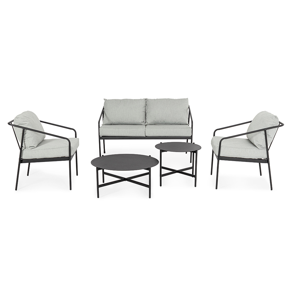 The picture is completed by the pair of coordinated coffee tables , perfect for keeping refreshing drinks or decorations at hand, combining practicality with a chic and minimal style. This lounge set is more than just a group of furniture: it is an invitation to create memories in the comfort of your own garden, where design and function come together to guarantee moments of true pleasure and sophisticated hospitality .