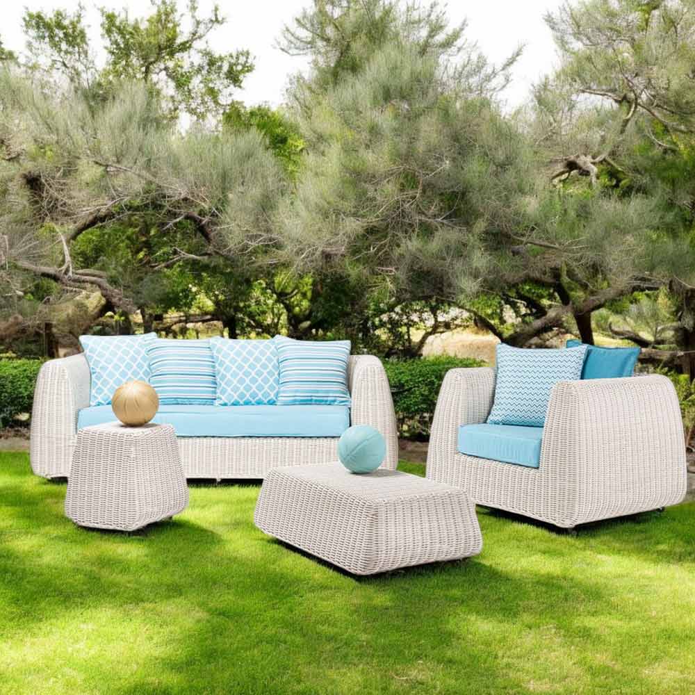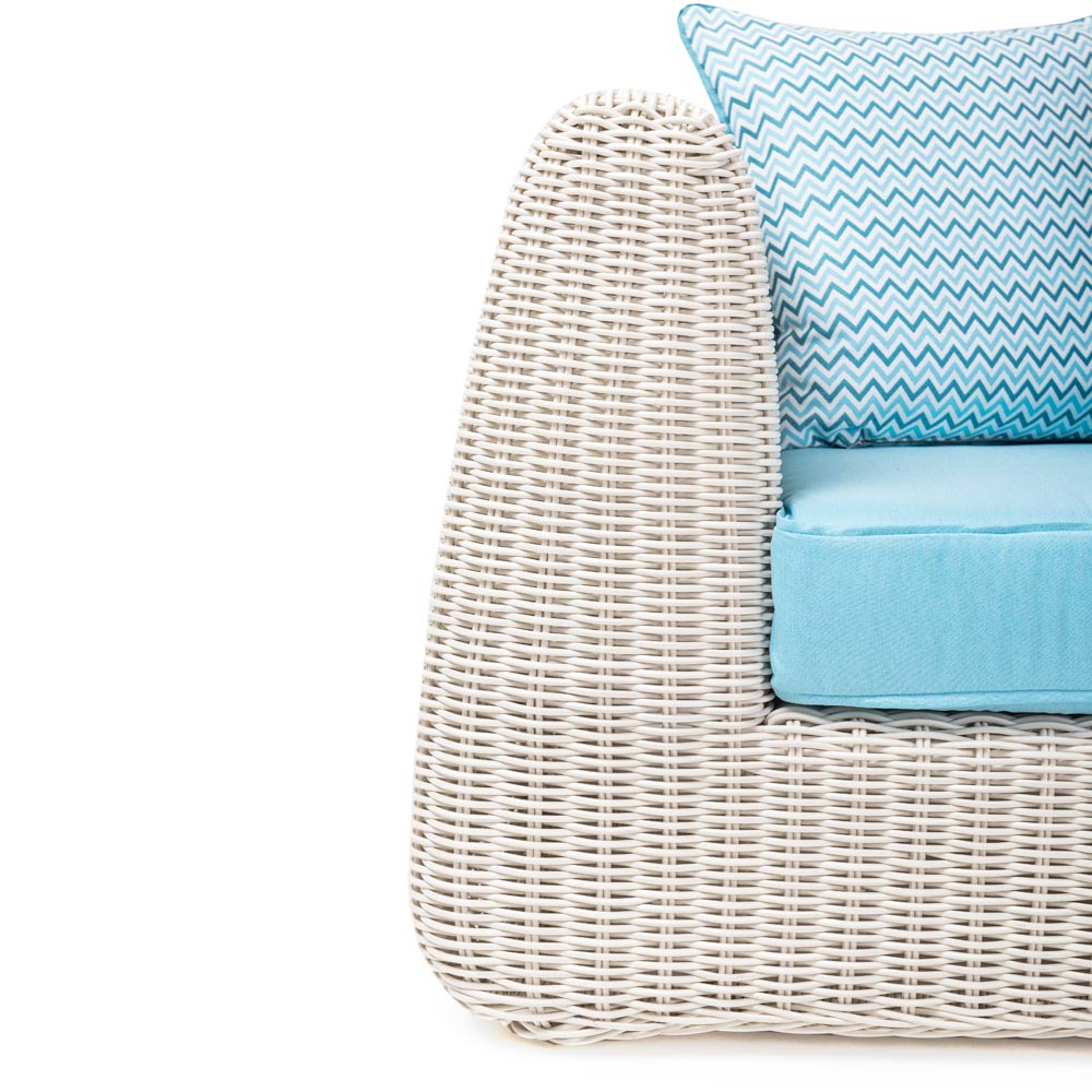 The refined design , the very high quality of the materials and its sinuous shapes make it perfect for interior and exterior furnishings. Thanks to the use of special high-quality materials , this outdoor lounge does not fear bad weather and temperature changes thanks to the certification of the woven fibre.