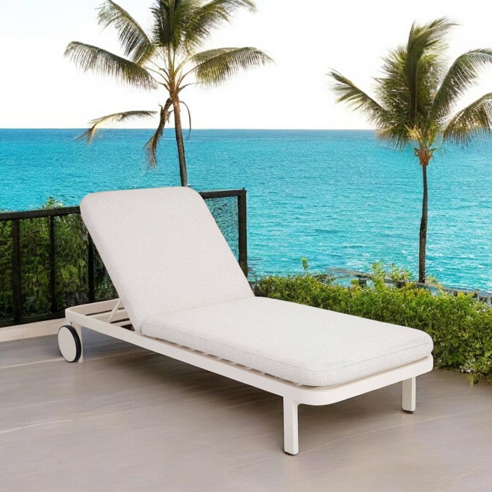 The minimalist design is enriched by thoughtful details, such as the integrated wheels that make it easy to move it wherever you prefer, following your moments of relaxation in the sun or shade. The padded mattress , covered in weather-resistant fabric , guarantees extraordinary comfort and durability over time.