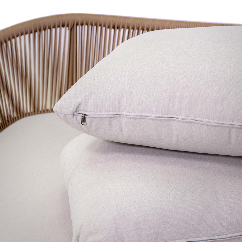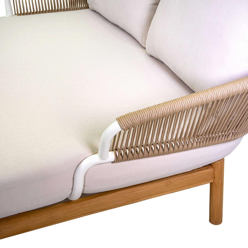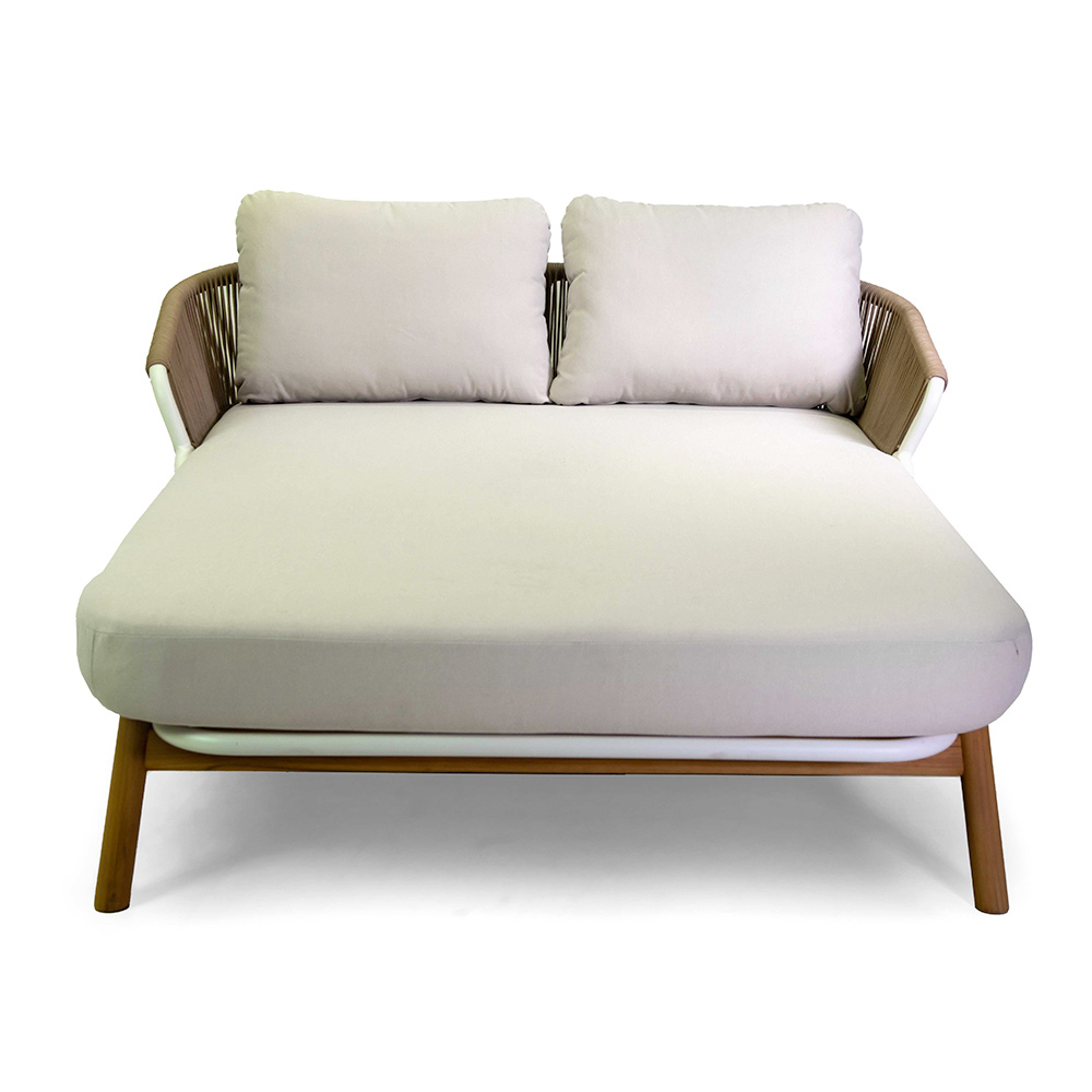 This sun lounger combines elegance and comfort, making it the perfect addition to any indoor or outdoor space. Its high-quality teak wood construction ensures durability and weather resistance, while its sleek design and clean queues will blend seamlessly with any interior. The soft and durable fabric upholstery provides maximum comfort, making it the perfect place to relax. The cushions add to the comfort, making this sun lounger a relaxing oasis perfect for enjoying moments of pure tranquility outdoors or in a bright lounge.