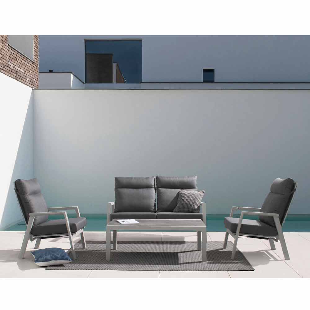 Outdoor Sofa in Fabric and Aluminium with Reclining Backrest - Nathy