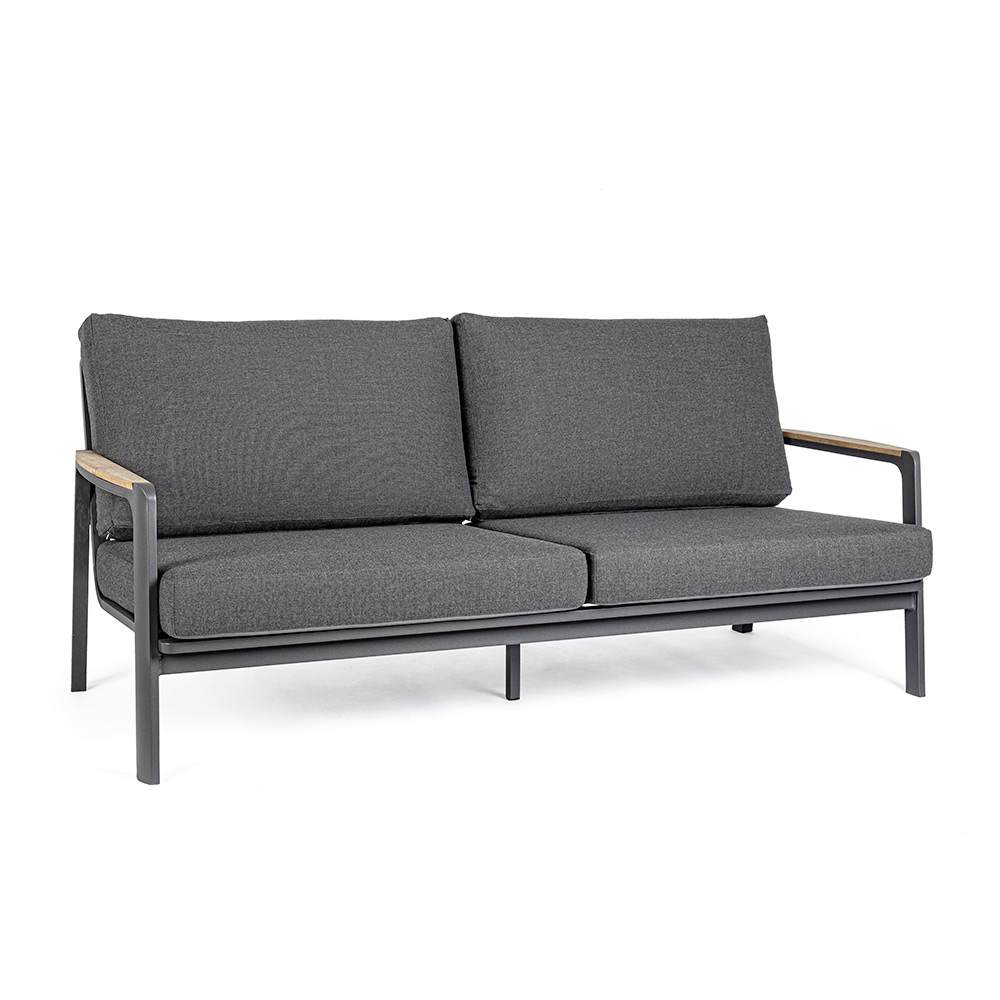 Quality outdoor sofa with aluminium structure and seat in removable fabric.