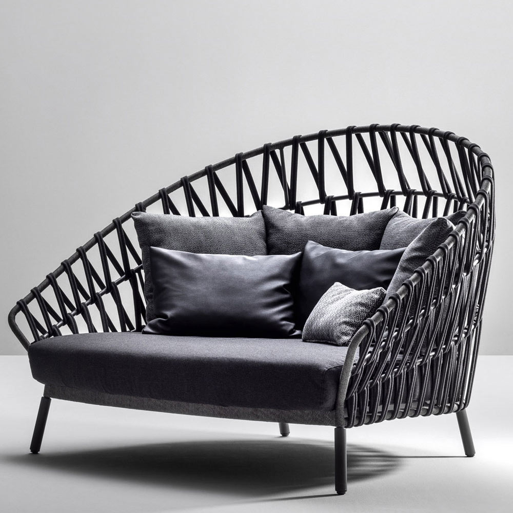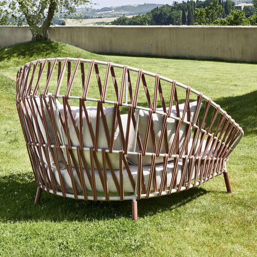 Garden sofa with painted aluminium structure and woven backrest Made in Italy.