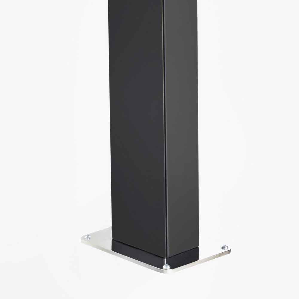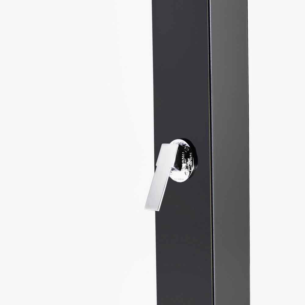 Outdoor solar shower Made in Italy with column in AISI 304 stainless steel (3mm thick) oven-painted in black finish and shower head arm in polished AISI 316L steel .