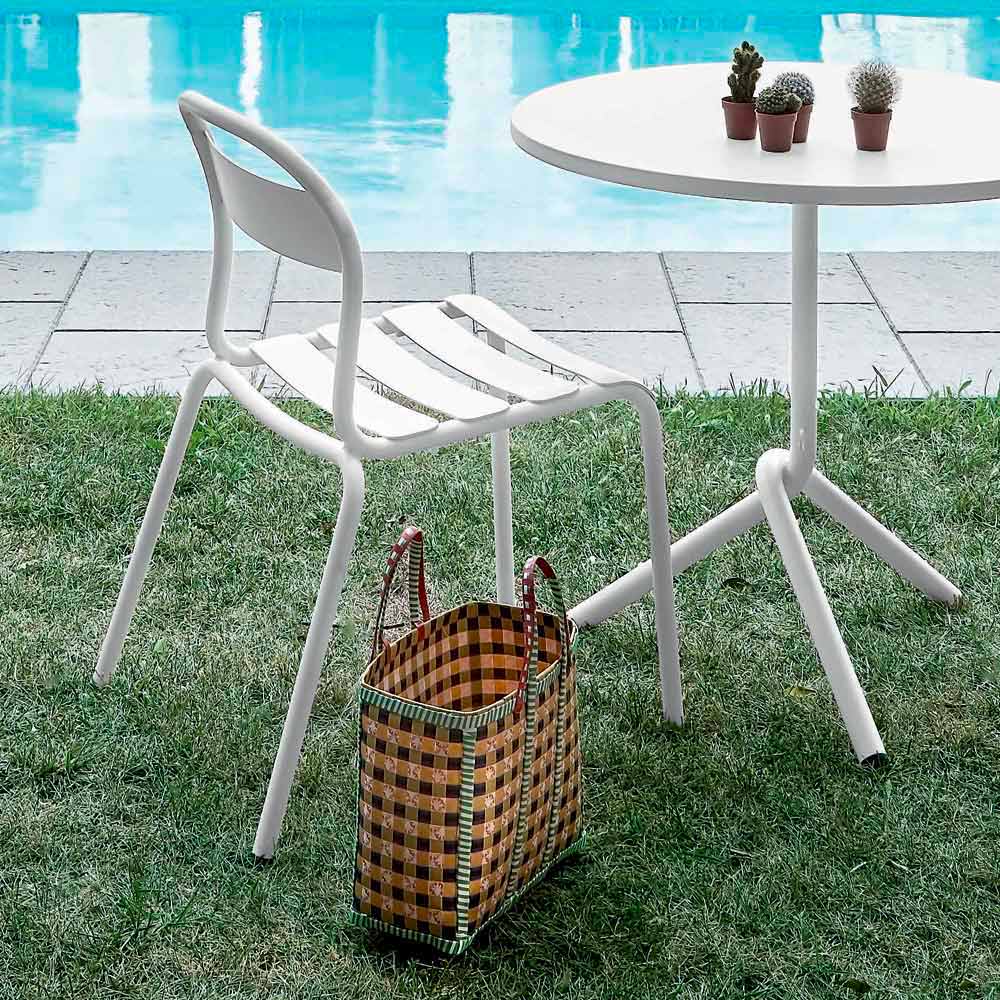 Ulyssa is an outdoor chair with a practical and versatile design whose queues are characterized by their fluidity. The chair is entirely made of aluminium, which is perfect for use in outdoor environments but which, thanks to the wide range of colours proposed, is also suitable for indoor and not only domestic environments.