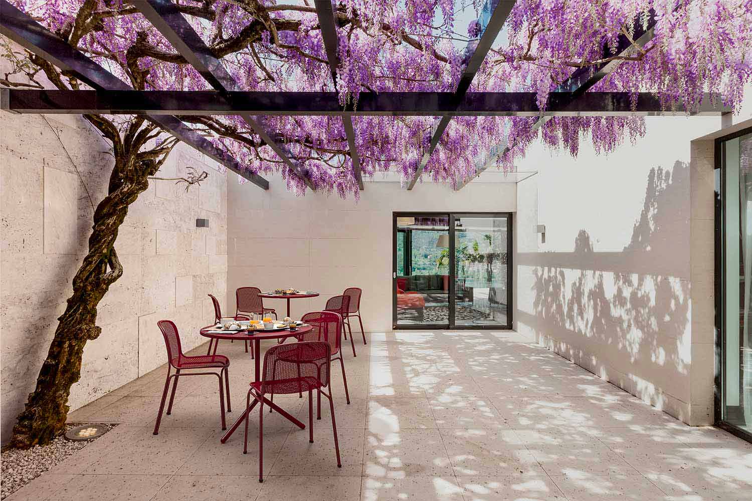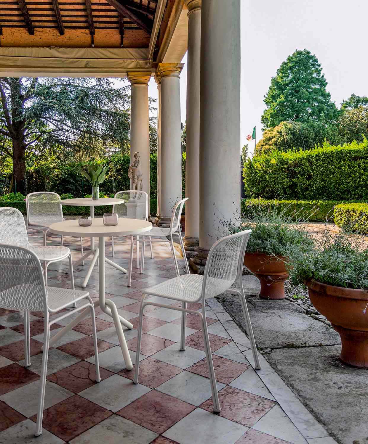 Prunella is a wonderful outdoor chair entirely made of metal and wire mesh that perfectly combines traditional queues with a contemporary design making the chair light but solid. It is also extremely easy to handle thanks to the slightly raised body compared to the legs. Available in 5 colour variations that allow it to give personality to any environment.