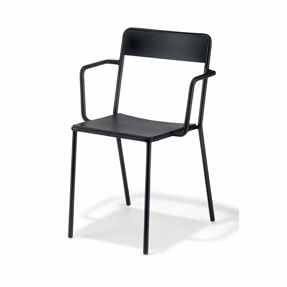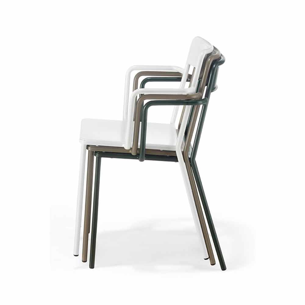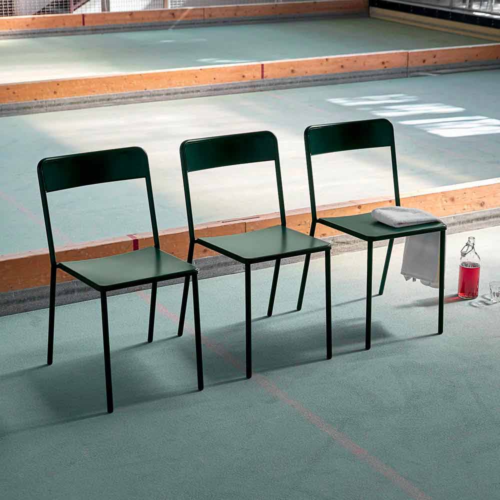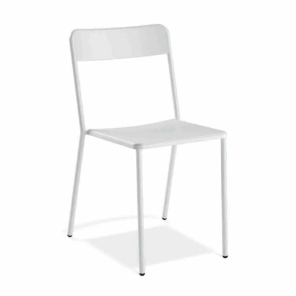 Stackable painted metal outdoor chair Made in Italy, 4 pieces.
