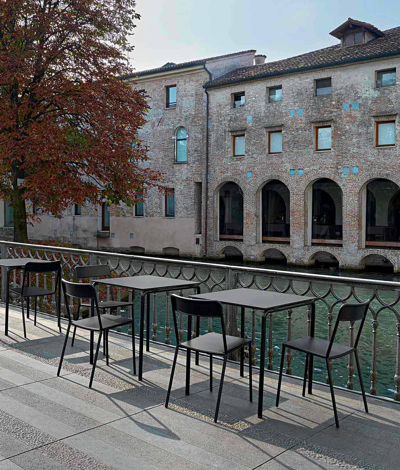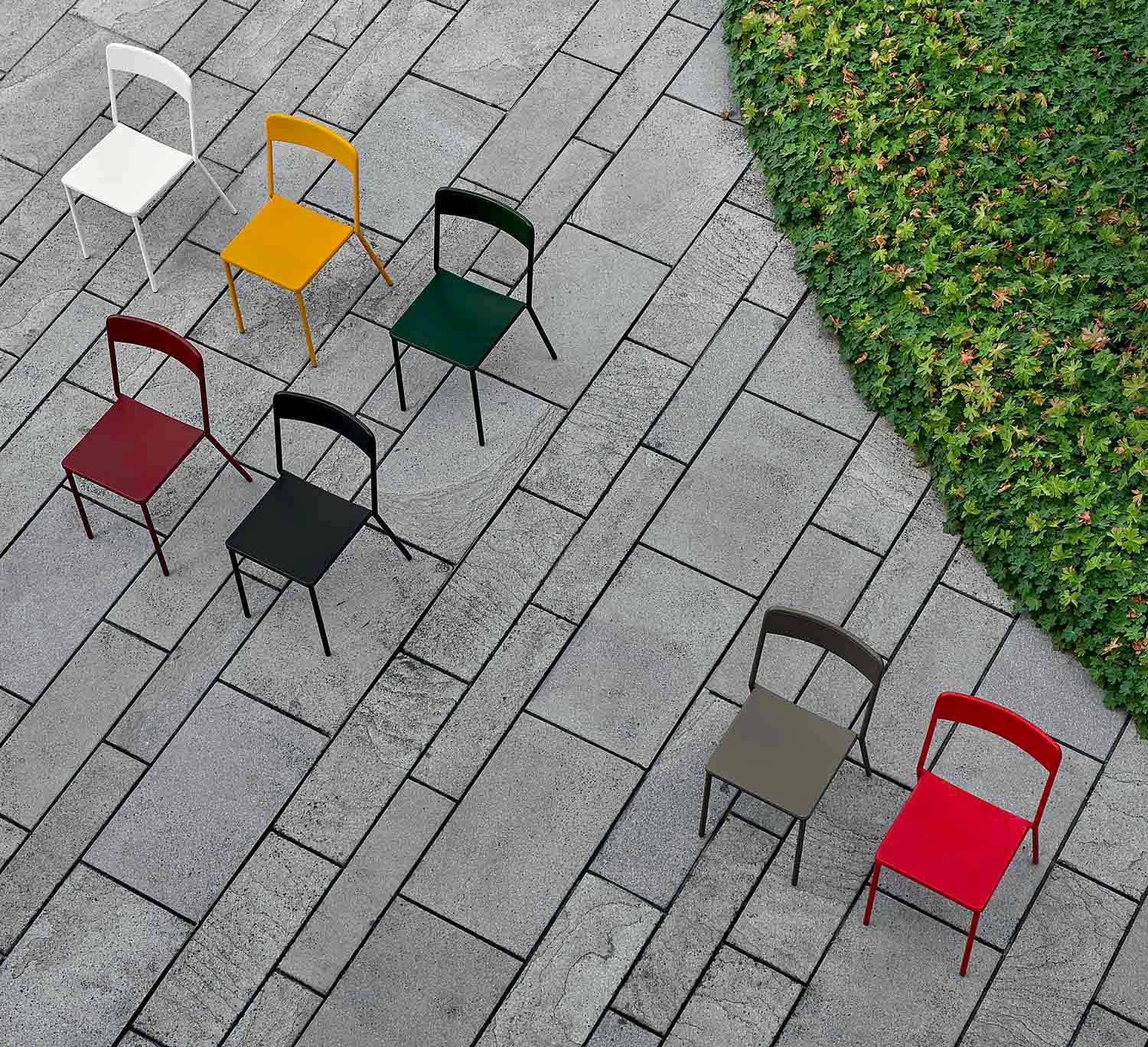 Xylia is an outdoor chair with a minimal and versatile style entirely made of painted metal available in 7 colour variations which allow Xylia to give personality and class to any environment. Its essential queues make it an extremely practical and handy chair. Xylia is also stackable up to a maximum of 6 units allowing you to optimise spaces at best.