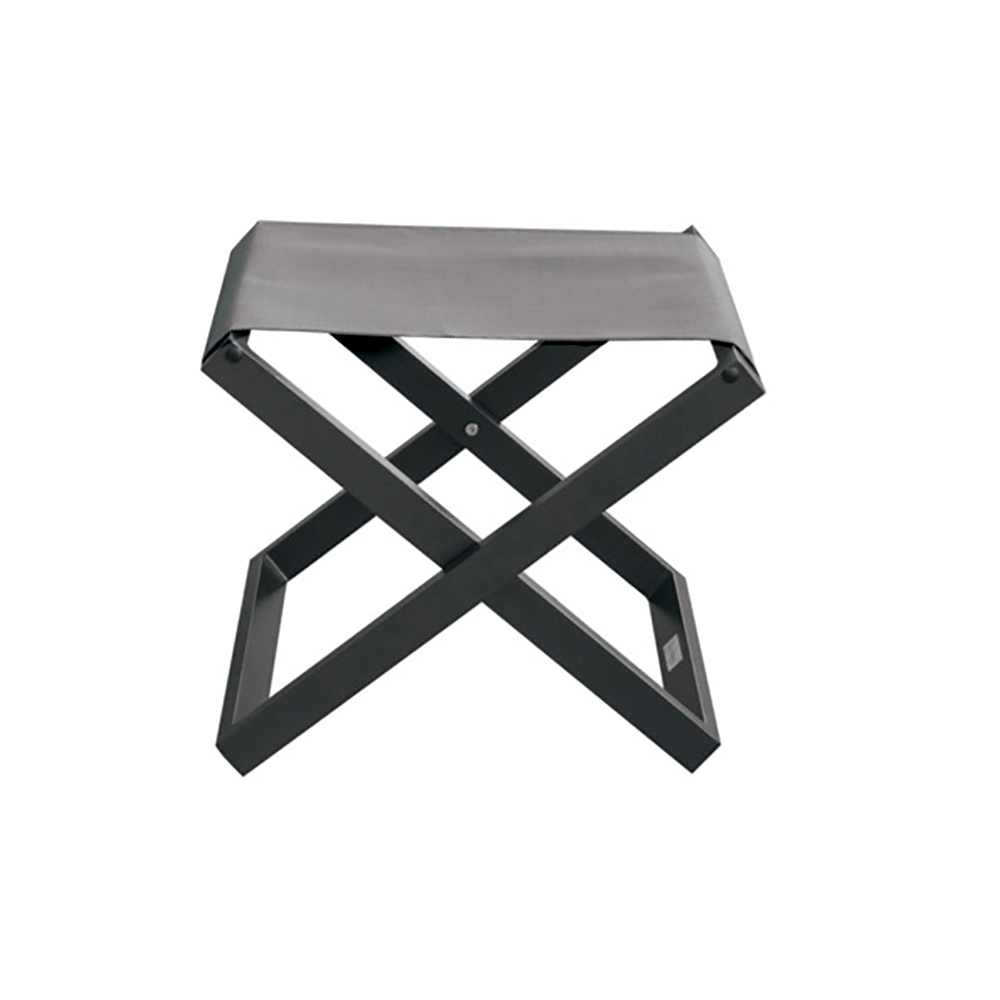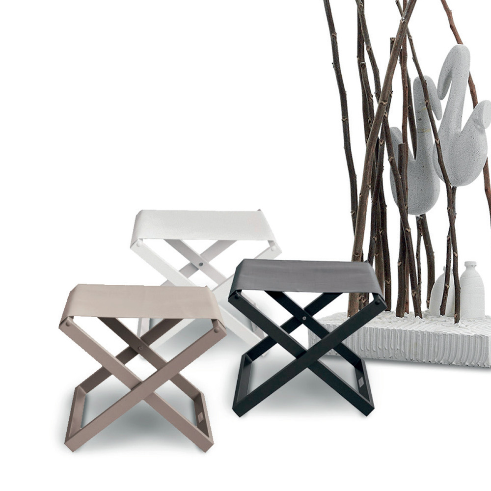 Low stool for outdoor use with structure in powder coated aluminium and textilene.