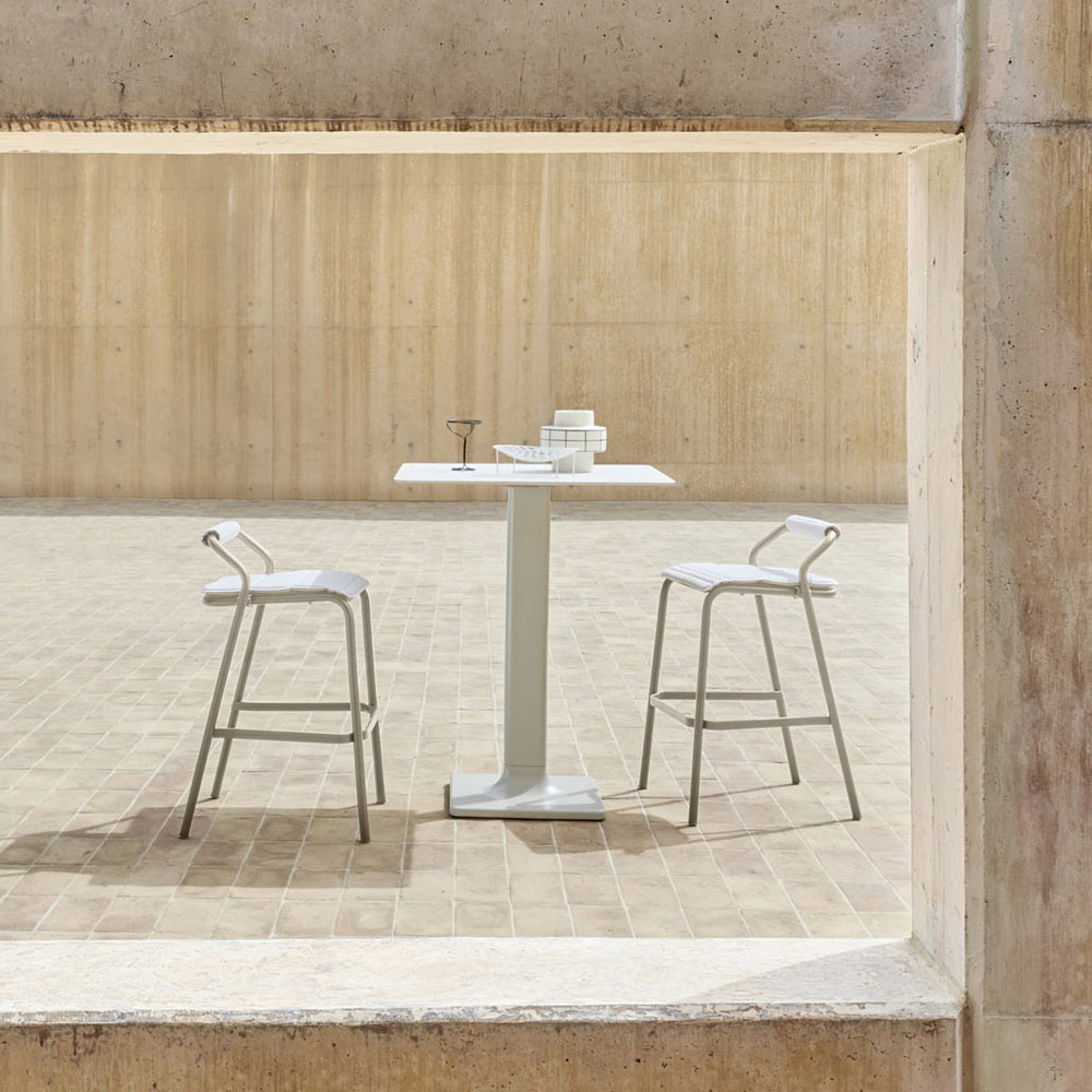 Outdoor stool in painted aluminium complete with Made in Italy cushions.