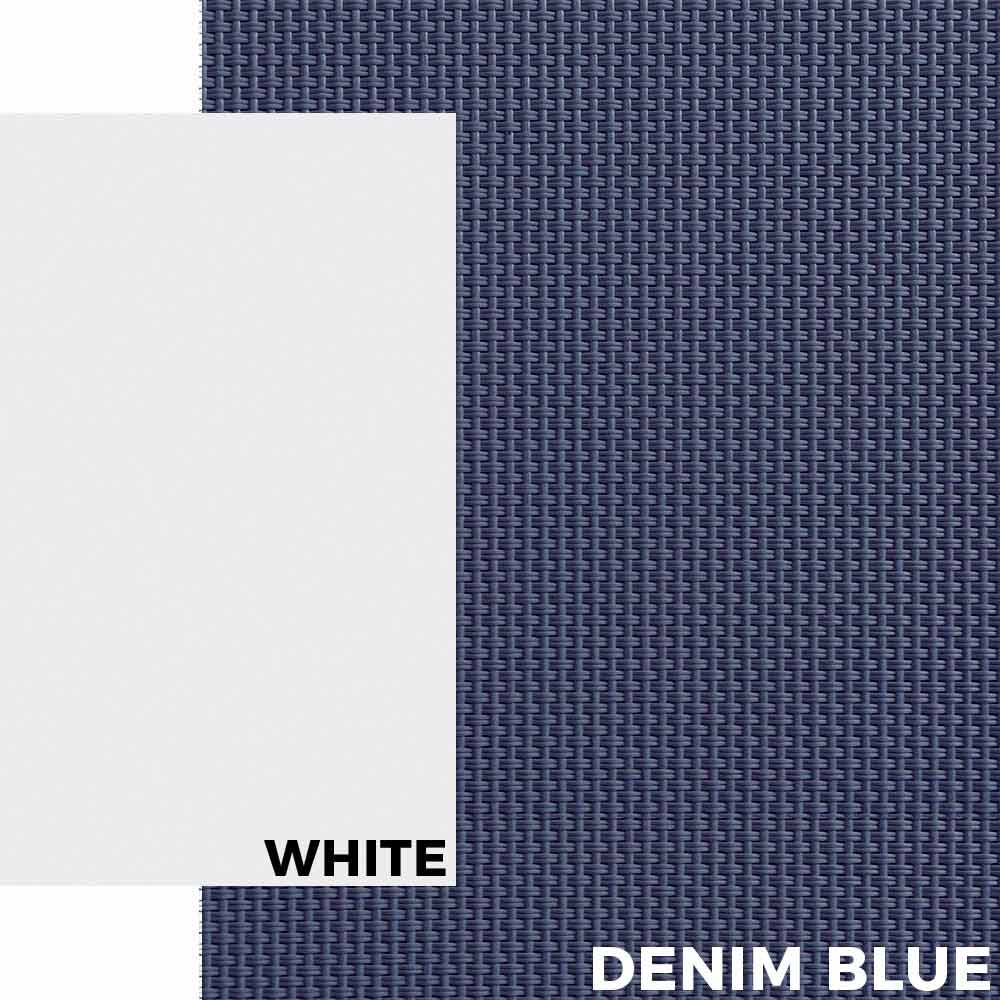 - white structure and blue seat;
