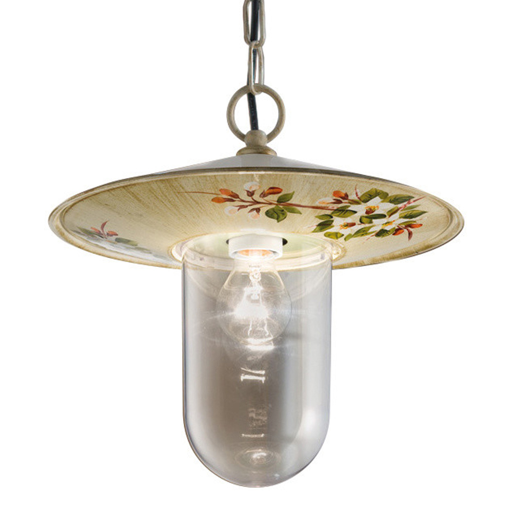 This suspension lamp for the garden is entirely made of aluminum with a hand-painted floral decoration for a classic and harmonious style between shape and colours.