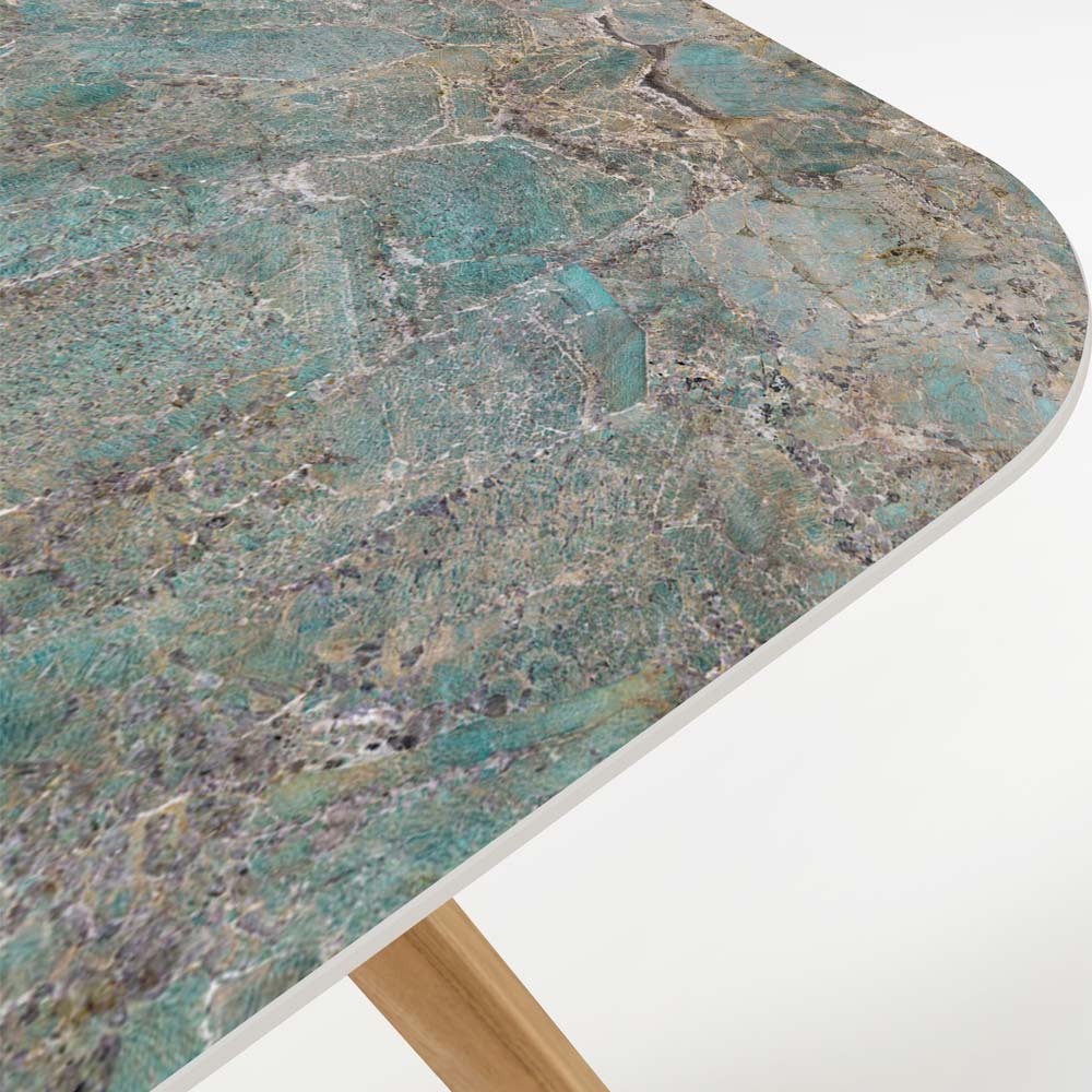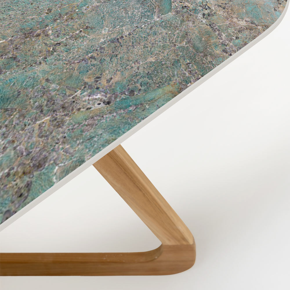 Made in Italy. This exclusive outdoor table is a true design gem, combining the elegance of wood with the modernity of ceramic. The tabletop, crafted from high-quality ceramic with a stunning antique green hue, offers exceptional weather resistance and lasting beauty.