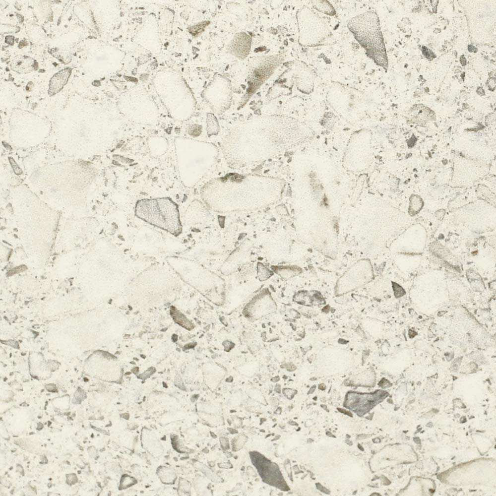 a matt white terrazzo finish and a subframe in