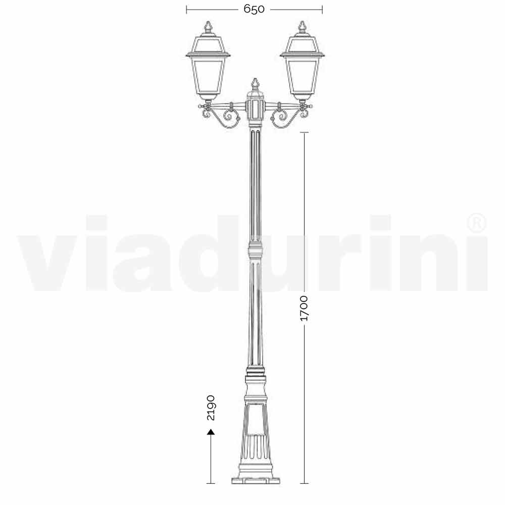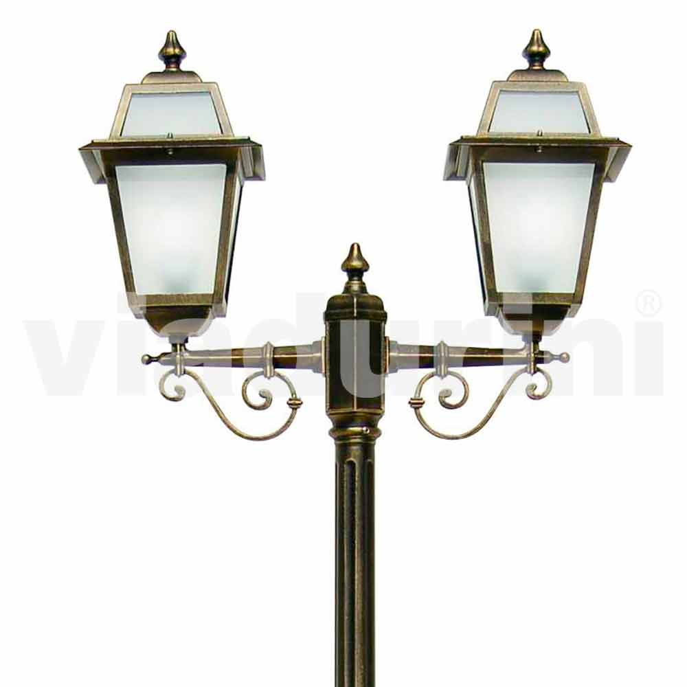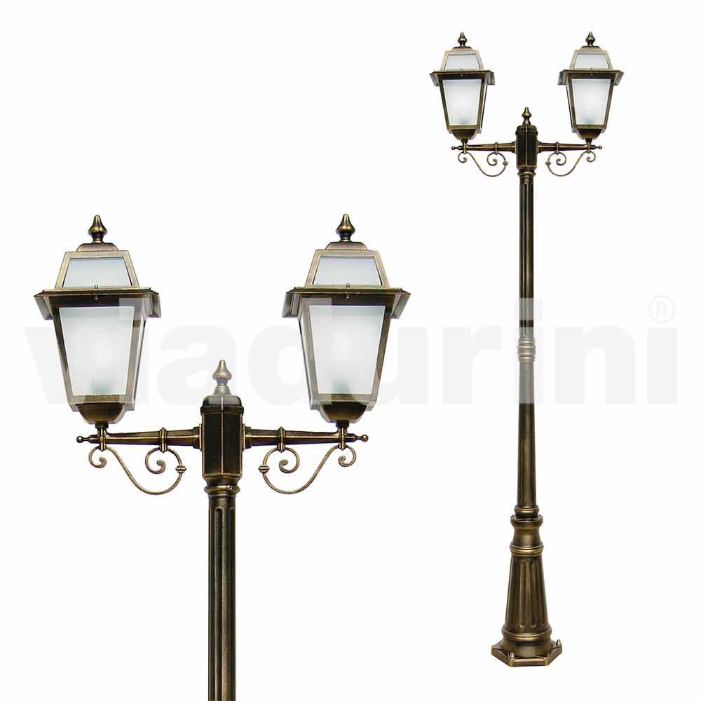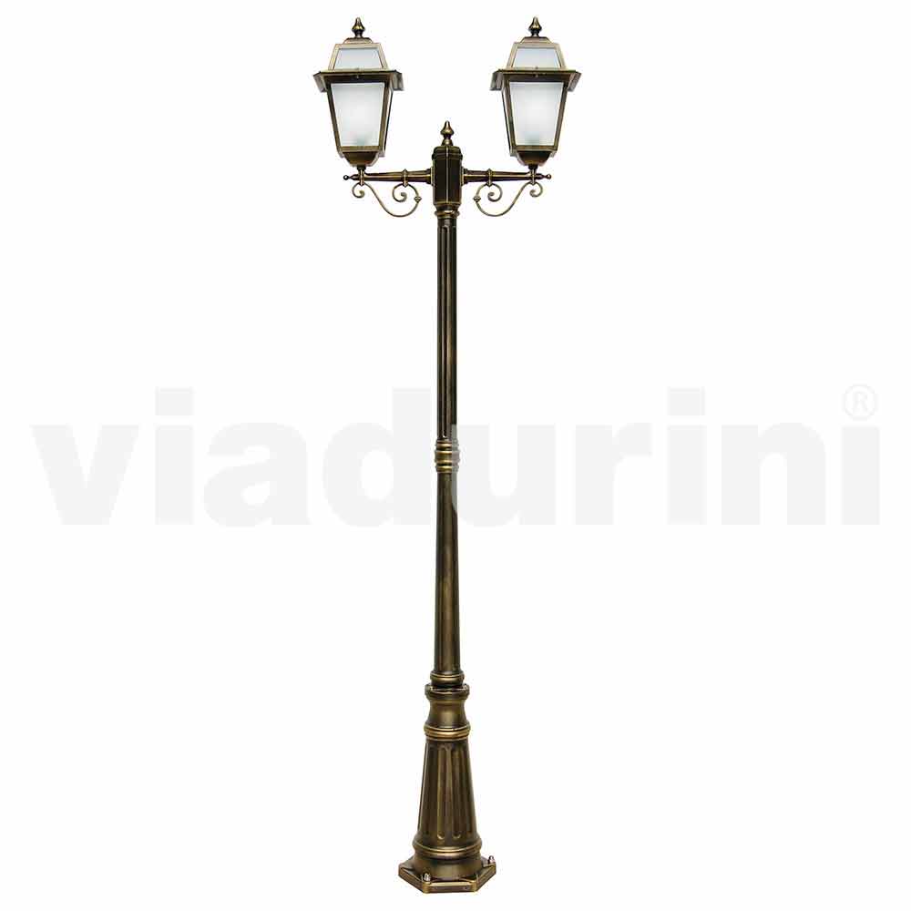 Kristel is a two-light outdoor lamppost handmade in Italy with high quality material: die-cast aluminium structure and glass diffuser available: transparent or sandblasted.