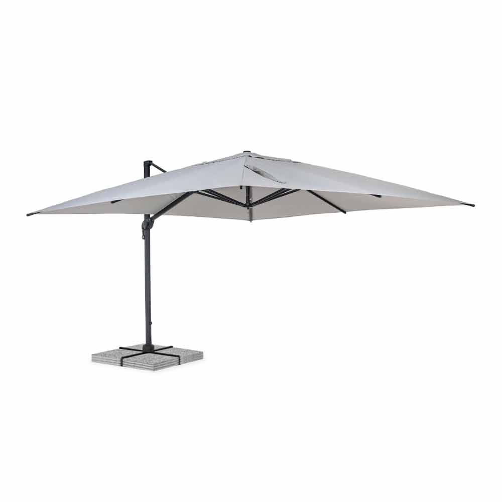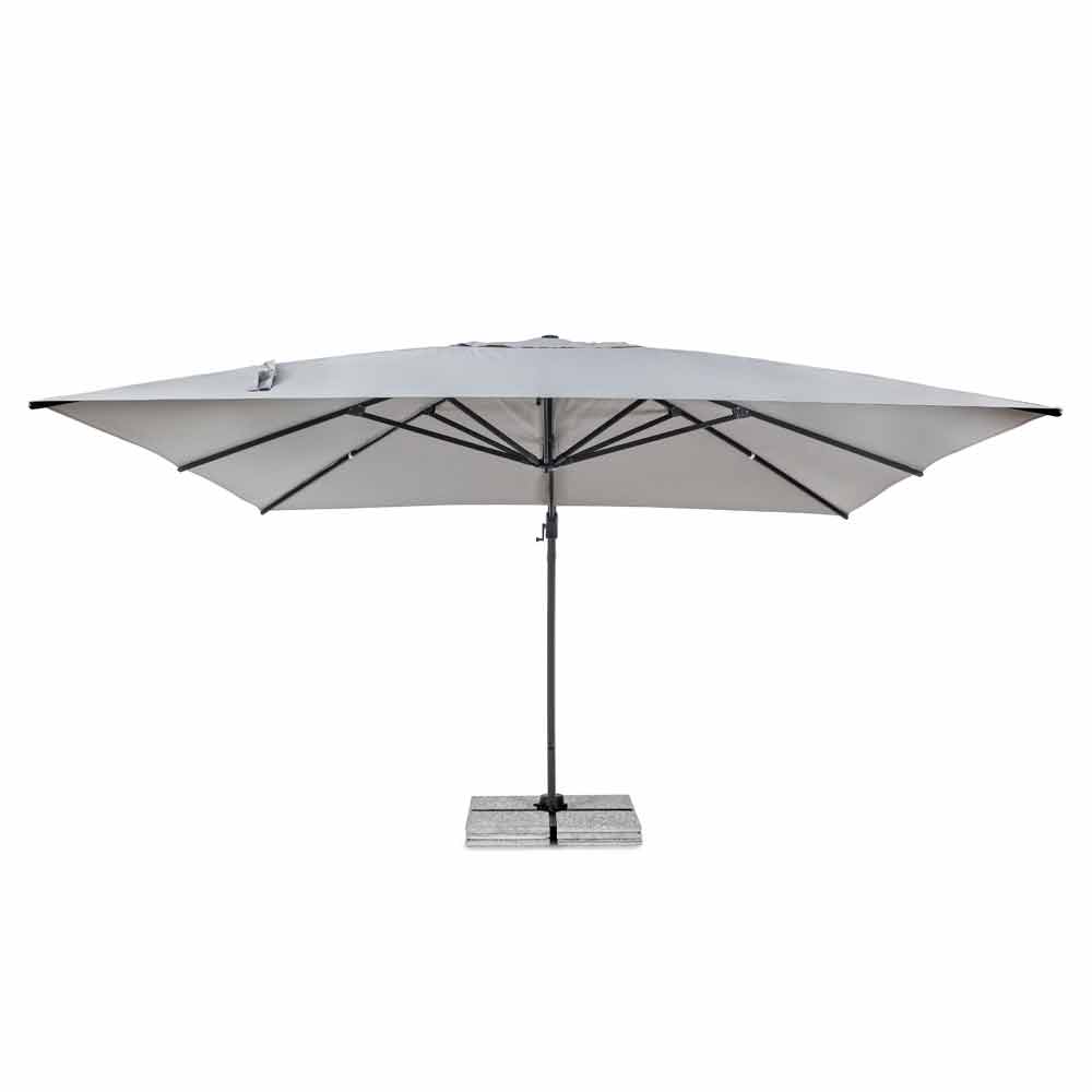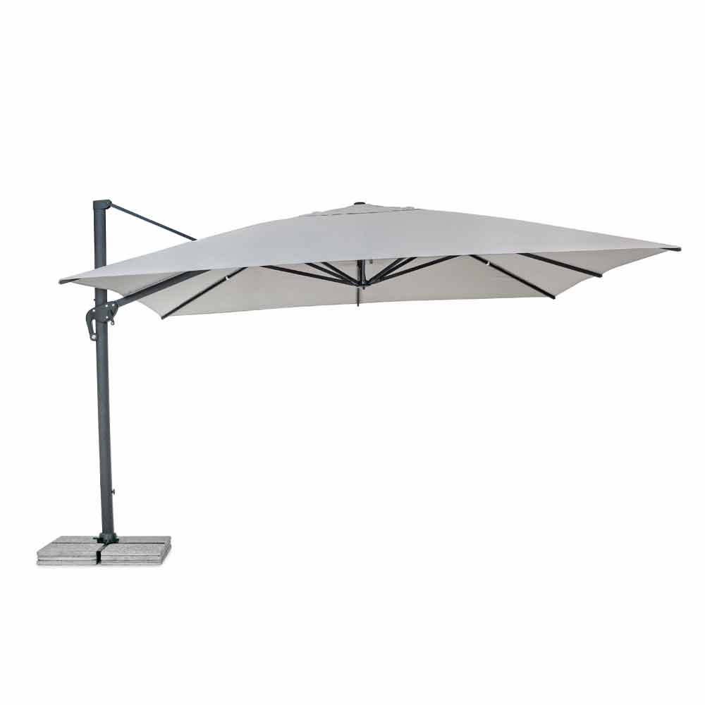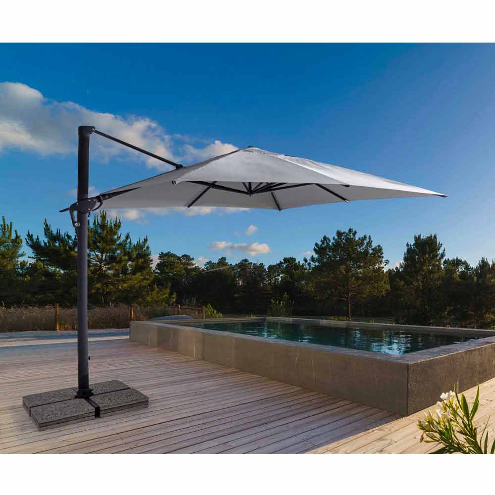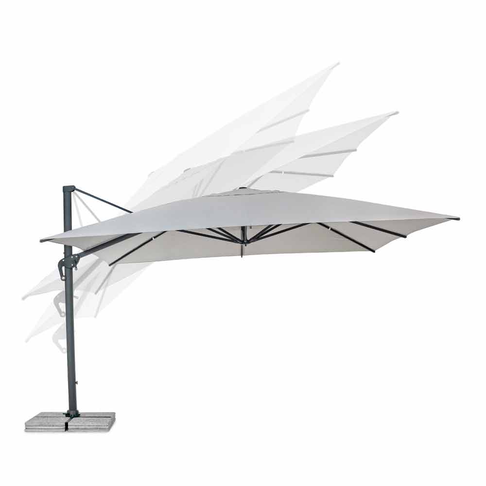 4x4 outdoor umbrella in grey polyester and anthracite aluminium.