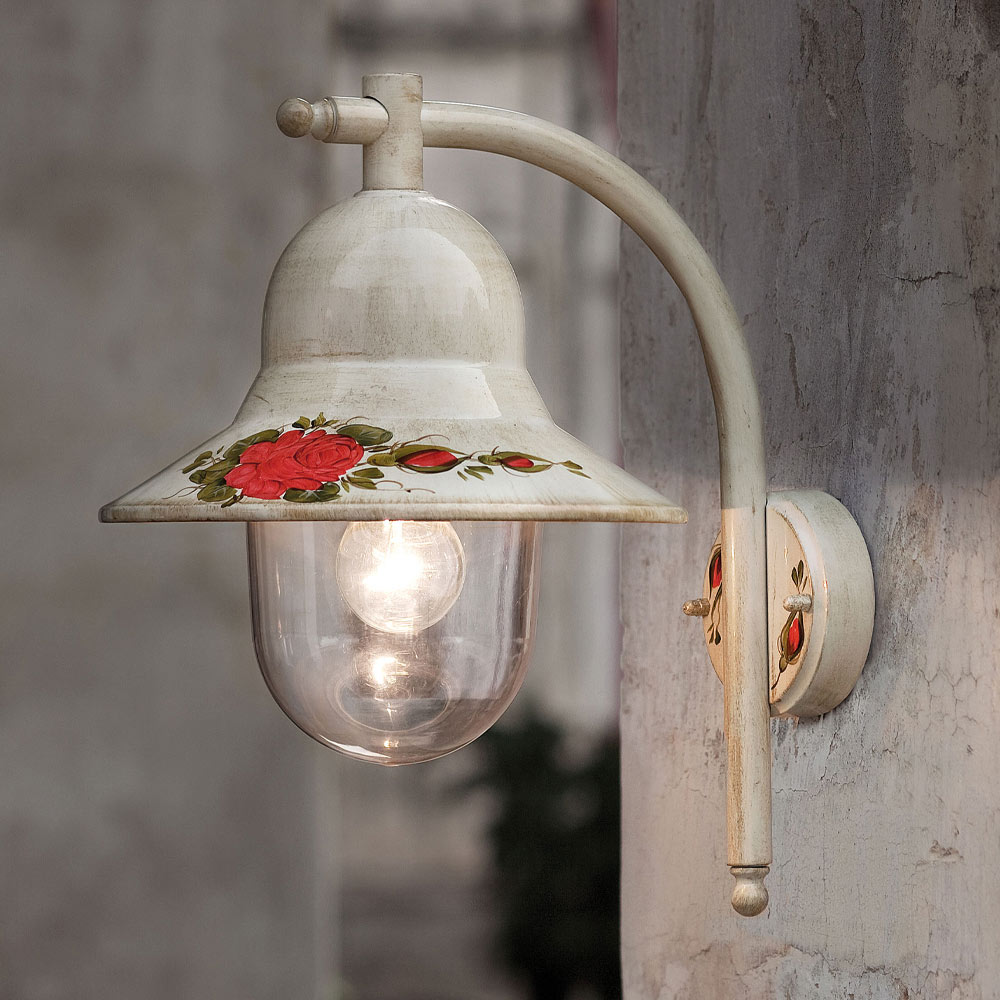 This garden wall light is entirely made of shaded white aluminum and decorated with hand-painted flowers for a classic and harmonious style between shape and colours.