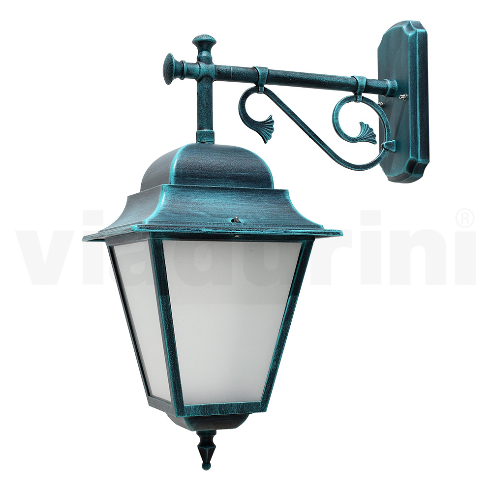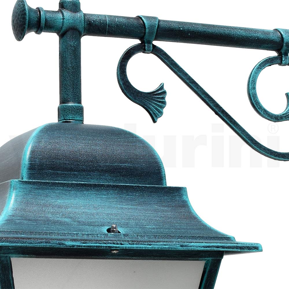 This outdoor lamp represents the pinnacle of elegance and functionality . With a die-cast aluminum structure, it promises not only strength and longevity but also an eye-catching style. Its finish blends beautifully with the surrounding architecture, creating a welcoming and refined atmosphere . The sandblasted glass that surrounds the light source guarantees a clear and bright diffusion of light, perfect for welcoming guests or for gracefully illuminating your outdoor space. The sophisticated design , characterized by curved queues and ornamental details, makes this lamp a point of visual interest as well as a source of light. Ideal for those who appreciate timeless charm and desire an aesthetic that complements the natural beauty of the outdoor environment.