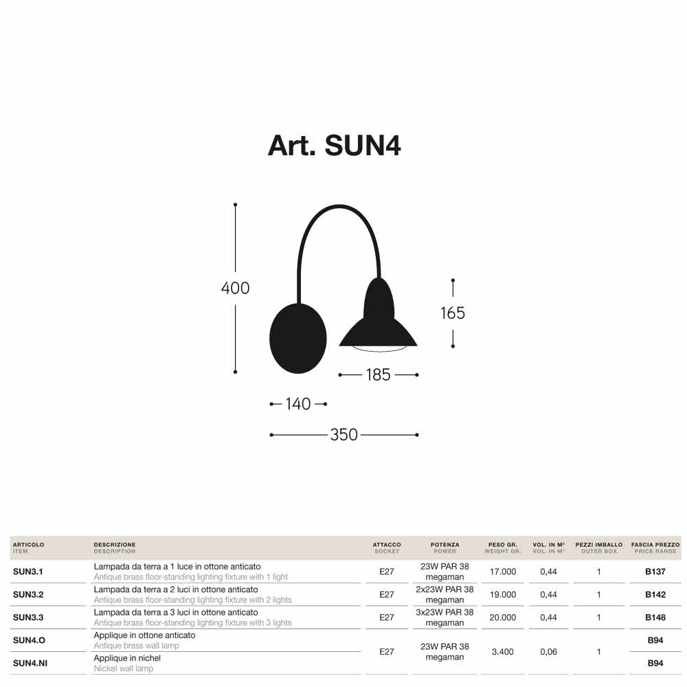 Outdoor wall sconce Jasmine by Aldo Bernardi, made of brass.