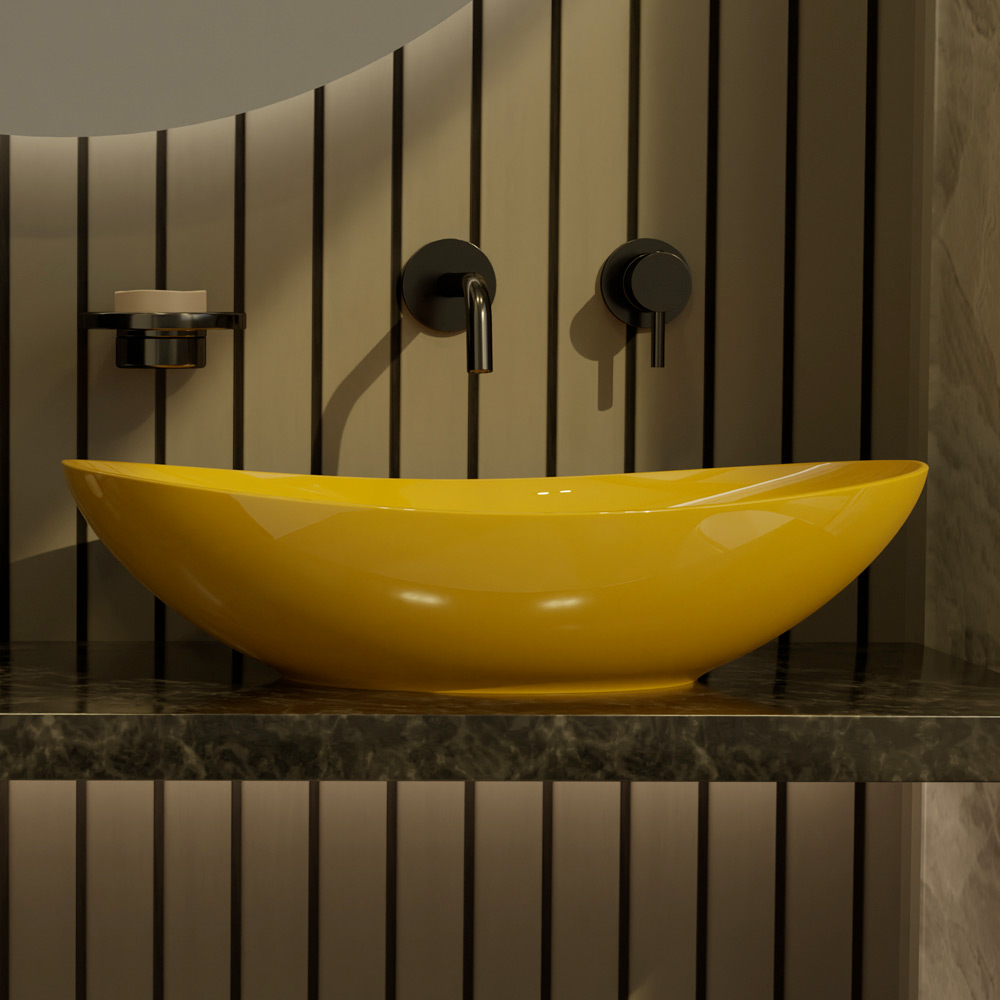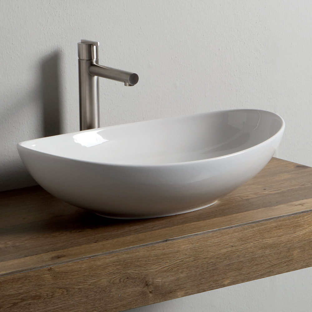 Oval countertop washbasin in glossy or matt colored ceramic made in Italy through craftsmanship . Sinuous and harmonious queues give life to a modern and avant-garde design designed for those who love a simple and versatile style without giving up an original touch in their bathroom area.