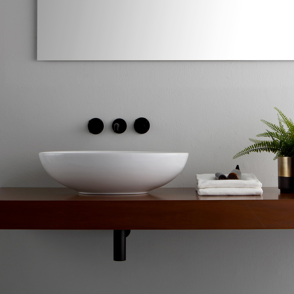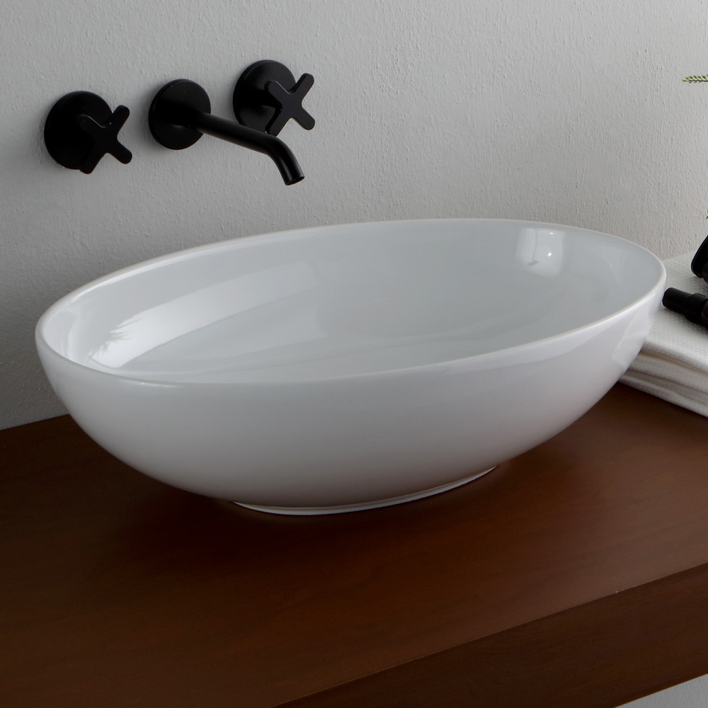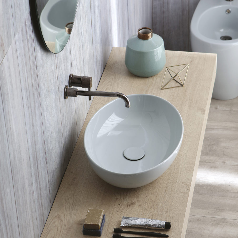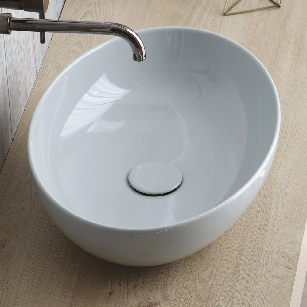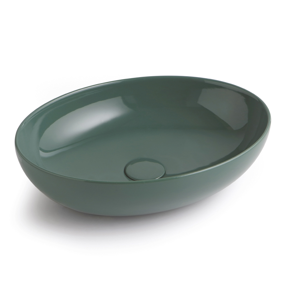 Oval countertop washbasin in colored ceramic with glossy finish made through 100% Made in Italy craftsmanship . A product with a modern flavor and versatile aesthetics designed and created to furnish bathroom areas with a minimal style in which it completes the look with a touch of personality and character . Its simple design and harmonious lines adapt perfectly to any stylistic situation, enriching the surrounding furniture with a creative touch and thus becoming the true protagonist of the room.
