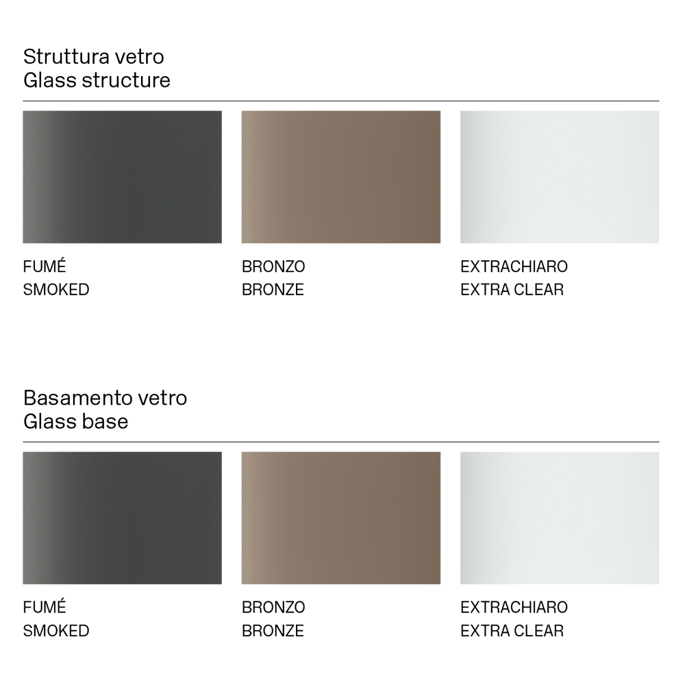 elegant and sculptural structure , this piece of furniture is born from the combination of materials of different nature together with the passion for glass processing, thus managing to define a representation of strength and character through different shapes and thicknesses.